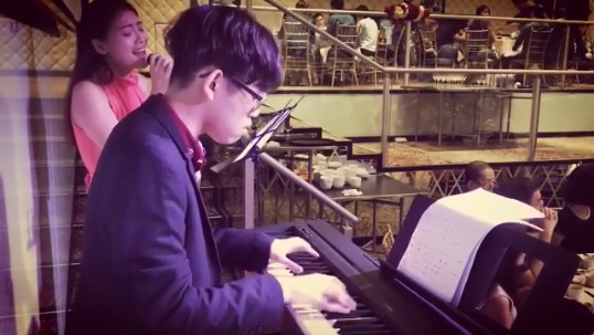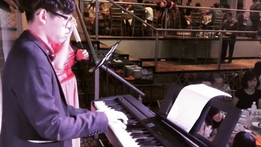 Me and the keyboardist at Mandarin Orchard Singapore.