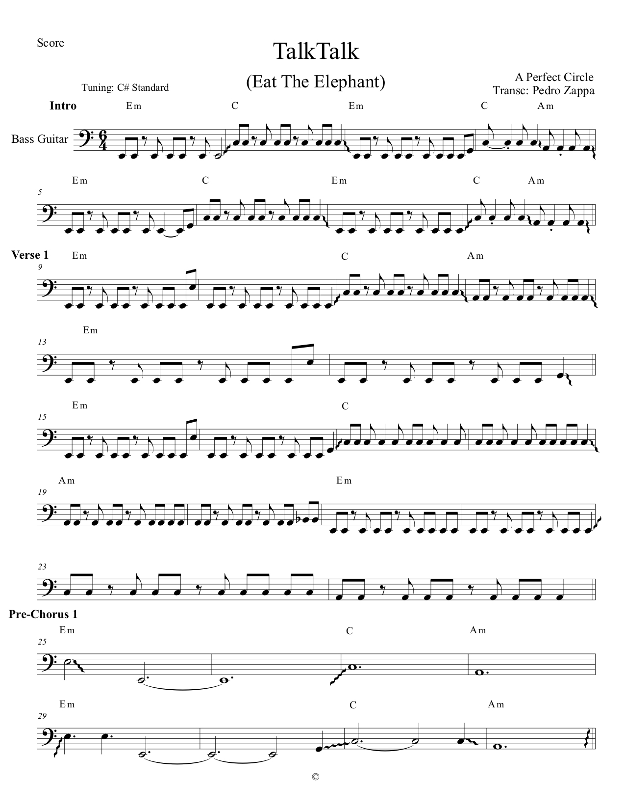 A Perfect Circle - TalkTalk (Bass Cover) [Pedro Zappa] w/ Notation Transcription