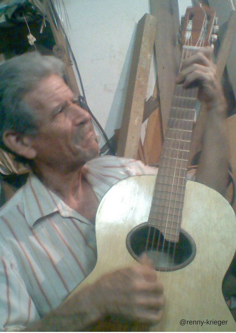 ¿Cómo? ¿Quede igualito?Sencillo! es una mezcla de artes donde empleamos nuestro ingenio, lo dejamos fluir, usamos el dibujo, el diseño, la plástica, las proporciones, la manipulación de herramientas y en nuestro caso para la fabricaron de instrumentos de cuerda, como el cuatro y la guitarra, la talla de la madera. Ella nos va diciendo como quiere ser cortada o cepillada, es decir, la madera como una bella dama expresa sus sentimientos y nosotros hacemos la proposición o transmitimos que queremos de ella al transformarla con nuestras manos... convirtiéndola en instrumentos musicales.