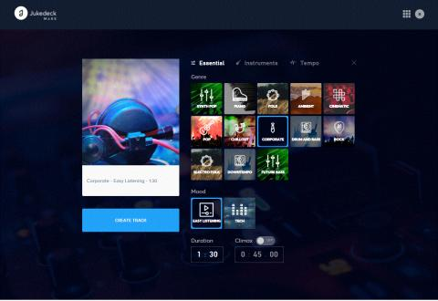 영국의 인공지능 스타트업 쥬크덱이 개발한 이 인공지능 음악 프로그램은 누구나 이용할 수 있도록 온라인(www.jukedeck.com)에 공개됐다. 각자 원하는 음악의 장르, 노래를 구성하는 분위기, 원하는 악기, 음악 속도 등을 입력하면 자신의 느낌에 맞는 개별 맞춤형 음악이 탄생한다.