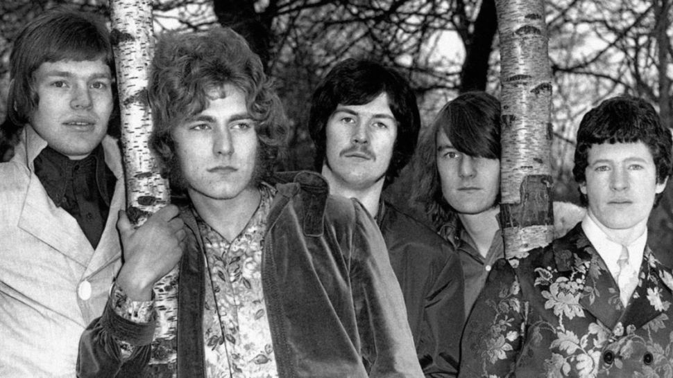 Robert Plant (center) with strong hair, C 1962. Image source