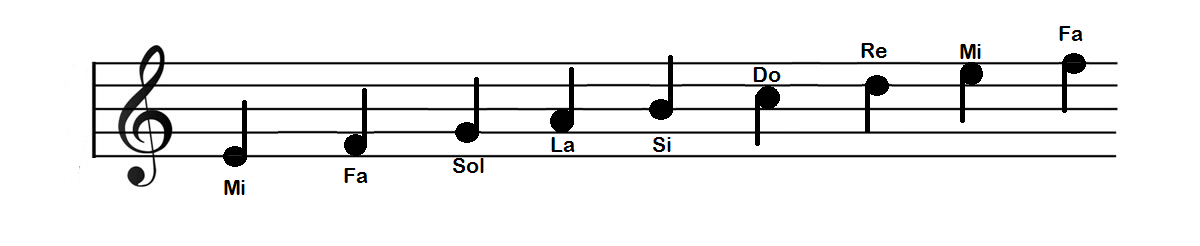 Y en ese orden se repiten indefinidamente, hacia arriba o hacia abajo, las notas de la clave de Sol.