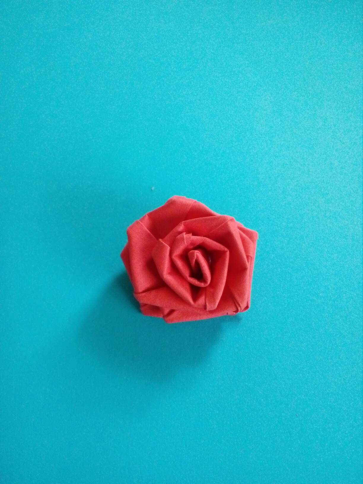 ပြီးနောက်အစိမ်းရောင်စာရွက်အသုံးပြုပြီးအရွက်များခေါက်ပါတယ်။စာရွက်ကိုအလျားအနံတူညီစွာဖြတ်ပြီး၊ထောင့်စွန်းမှတစ်ဝက်တိတိခေါက်လိုက်တယ်။အလယ်အထိတစ်ဘက်စီမှစာရွက်ကိုခေါက်မယ်။ထိုနည်းအတိုင်းကျန်တစ်ဘက်ကိုလည်းခေါက်ပါတယ်။အရွက်များခေါက်ပြီးရင်တော့နှင်းဆီပွင့်တွေနဲ့အတူboxမှာအလှဆင်ပါတယ်။
