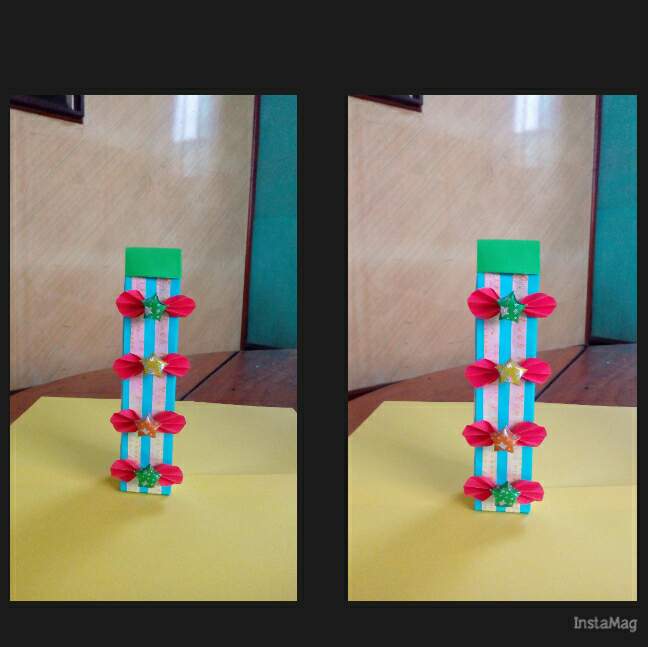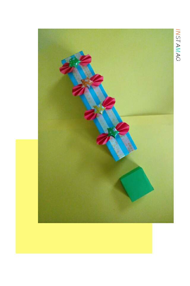 ဒီအဆင့်မှာတော့ဘိုးပွင့်ပြုလုပ်မှာပါ။အနီရောင်စာရွက်ကိုစက်ဝိုင်းပုံဖြတ်၍တွန့်ခေါက်ပြီးအလယ်မှအခြားအနီရောင်စာရွက်ဖြင့်ချည်လိုက်ပါတယ်။ဆက်လက်ပြီးကြယ်ပွင့်များခေါက်ပါတယ်။ကြယ်ခေါက်တဲ့စာရွက်အပိုင်းဖြင့်ပုံအတိုင်းအဆင့်ဆင့်ခေါက်လိုက်ပြီးကြယ်ပွင့်များကိုအနီရောင်ဘိုးပွင့်များနဲ့အတူကော်ကပ်ပြီးboxမှာအလှဆင