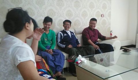 နံနက္ ၈ နာရီခန္႔တြင္ @tinhlaingoo ဆရာတင္လိႈင္ဦး ေရာက္ခ်လာ၏။ ထို႔ ေနာက္@pyaesonekhinkhin ျပည့္စံုခင္ခင္ ေရာက္လာ၏။ ထို႔ အတူ @ansoe ကိုစိုးႏိုင္ႏွင့္ @nyinyiwin ကိုညီညီဝင္းေခၚ ကိုေရႊဘိုလည္း ေရွ႕ေနာက္ မဆိုင္းပဲ ေရာက္လာၾက၏။ လူကာစံုေလၿပီ။ Victoria palace hotel ဧည့္ခန္းတြင္ ထိုင္၍ စကားေျပာေနၾကေသး၏။
