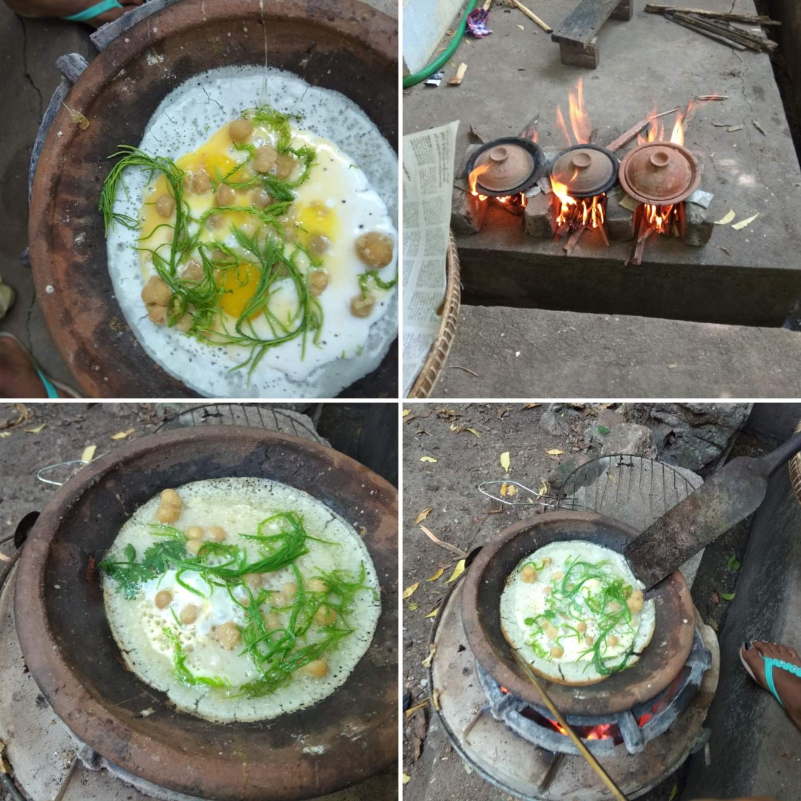ညီမေလးႏိုးလာရင္ေတာ့ ရြာကိုပတ္ ေၾကညာခိုင္းရမယ္😁😁။ မီးေမႊးထား ၿပီးေတာ့ မုန္႔ျပားသလက္ အိုးကင္း ေတြ ျပန္ေဆးၿပီး မီးဖိုေပၚ အပူေပးထားရတယ္ ။ မုန္႔လုပ္တဲ႔အခါ အိုးမကပ္ေအာင္က ဆားနဲနဲစီ ထည့္ၿပီးအိုးကင္း အပူေပးရင္း ေလွာ္ရတယ္။ ၿပီး ေတာ့ မုန္႔ႏွစ္ေရထည့္ ၿပီးေတာ့ ၾကက္ဥ တစ္ဇြန္းထည့္၊ ၿပီး ဆူးပုတ္နဲနဲ င႐ုတ္သီးနဲနဲ နံနံနဲနဲ အုပ္လိုက္ေရာ ၿပီး အိုးဖံုးပိတ္ထား အေပၚယံေလးတင္လာရင္ ဆီသုတ္လိုက္ ခနျပန္အုပ္ထား သံေယာက္မနဲ႔ ထိုးၾကည့္ ေအာက္မွာ မကပ္ေတာ့ဘူးဆို ေကာ္လိုက္ေတာ့ပဲ..။