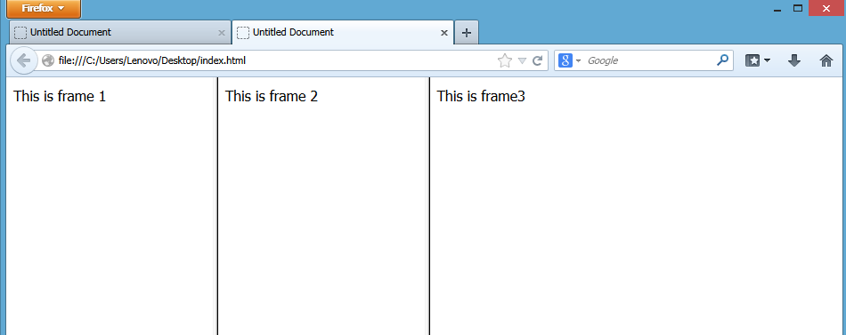 border="no" လို႔မေရးခဲ့လို႔ frame သံုးခုကို မ်ဥ္းေၾကာင္းေလးေတြနဲ႔ျခားေပးထားတာေတြ႔ရမွာပါ။