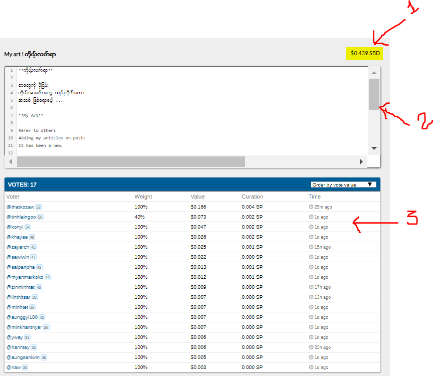 Images credit ; Screenshots to posts of @sawlwin & https://steemblockexplorer.com/@sawlwin/my-art-mimia-upnya
