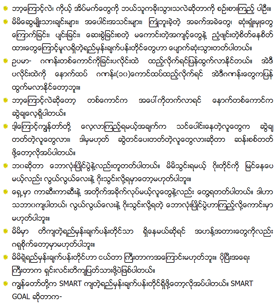 Personal Goal တိက်ျပတ္သားေသာရည္မွန္းခ်က္ပန္းတုိင္ (Tin Hlaing Oo)tinhlaingoo (61)in #myanmar • 8 years ago (edited) #Successful # Motivation @tinhlaingoo #steemit #life #successful