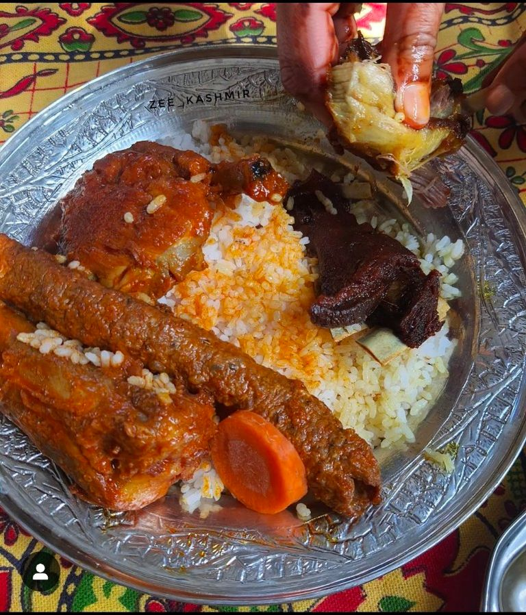 2 . Food : Kashmiri food basically called wazwan which is typically course of food item like Safron rice, Roganjosh ( a lamb preparation with spicy velvety gravy ) ,Yekhni ( rich curd based gravy ,lamb preparation) ,Kehwa ( Safron tea) .