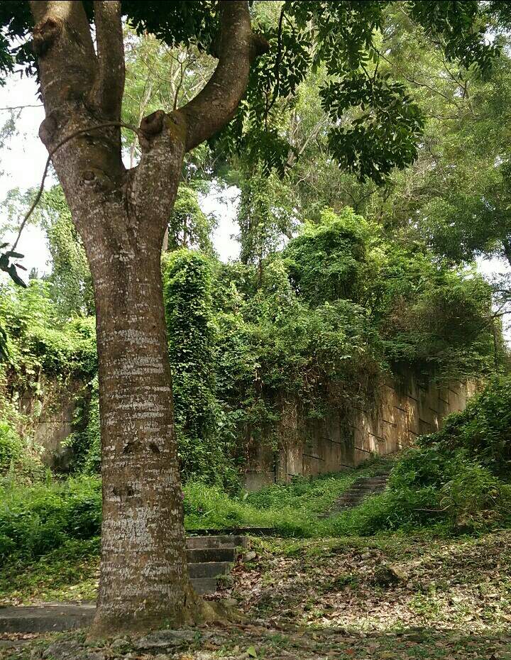 Today I went to a place and found an abandoned place. The place looks a bit creepy. It looks like only stairs and brick walls. The surrounding area is filled with bushes.