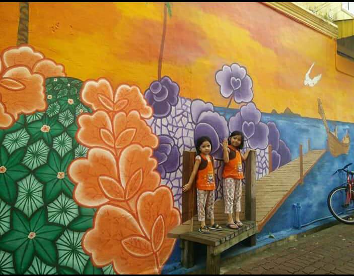 This photo was taken at China Town , Kuala Terengganu with amazing 3D Mural Art backgroud.