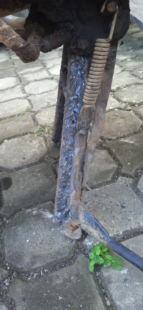 Then I went to the town by my bike to buy some foods. But unfortunately I had a problem with the motorcycle when I reach to town. Due to the abnormal sound came, I realized that there is a issue with the stand of the bike and anyhow I was able to manage the ride without any harm. Once I reach my home place, I realized that it is already broken and bent over the hinge. Then I started the repairing. To be honest, I am really interesting on these type of repairs. After removing the stand from the bike it was reshaped using a hammer and then for better strength the arms were reinforced with steel rods. after finishing welding works, the stand was finely attached to the motor cycle. After having a little test drive the repair was validated.
