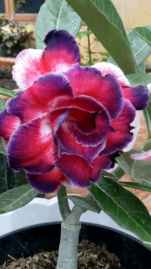 Semoga kita semua dalam keadaan sehat selalu dan segar bugar. Kemarin hari saya terpesona dengan sekuntum bunga Kamboja yang telah dikawinkan. Bunga begitu indah warnanya, merah bercampur dengan biru, indah sekali....