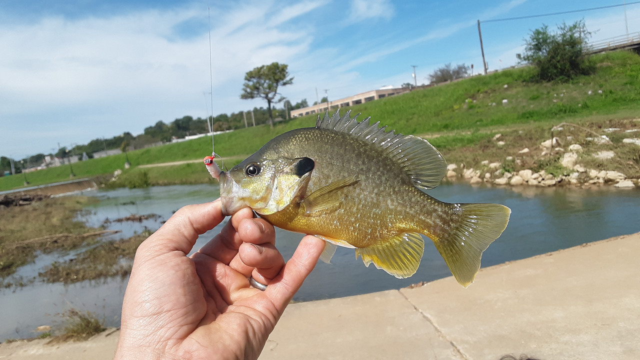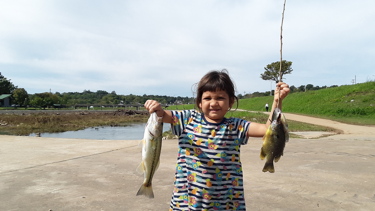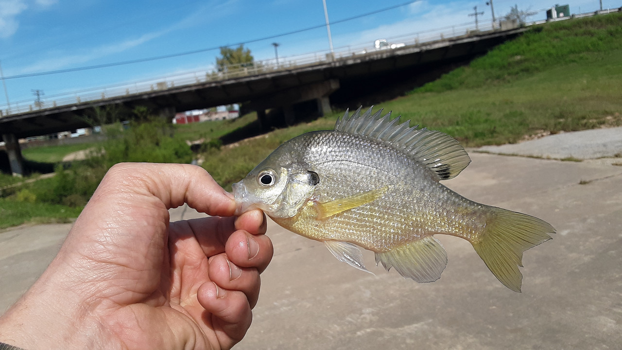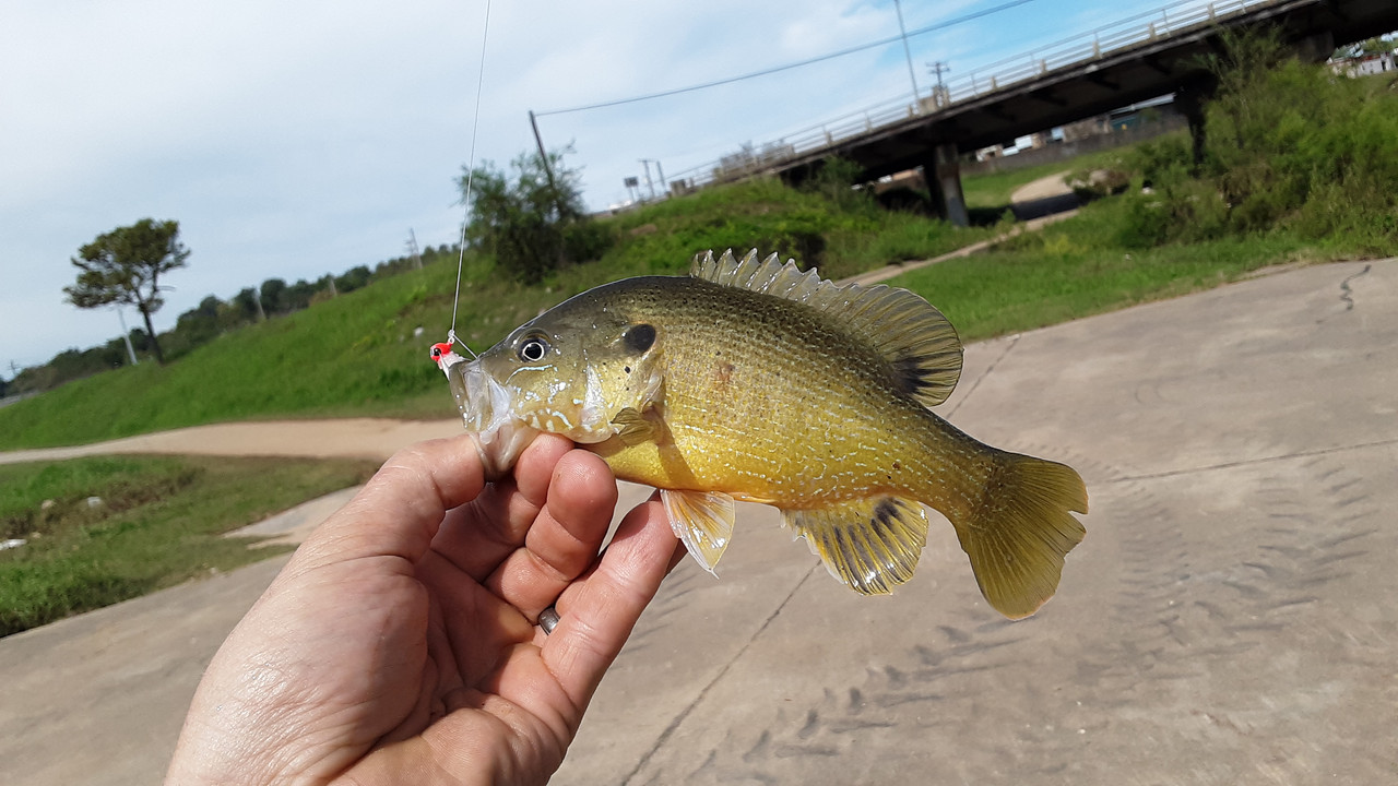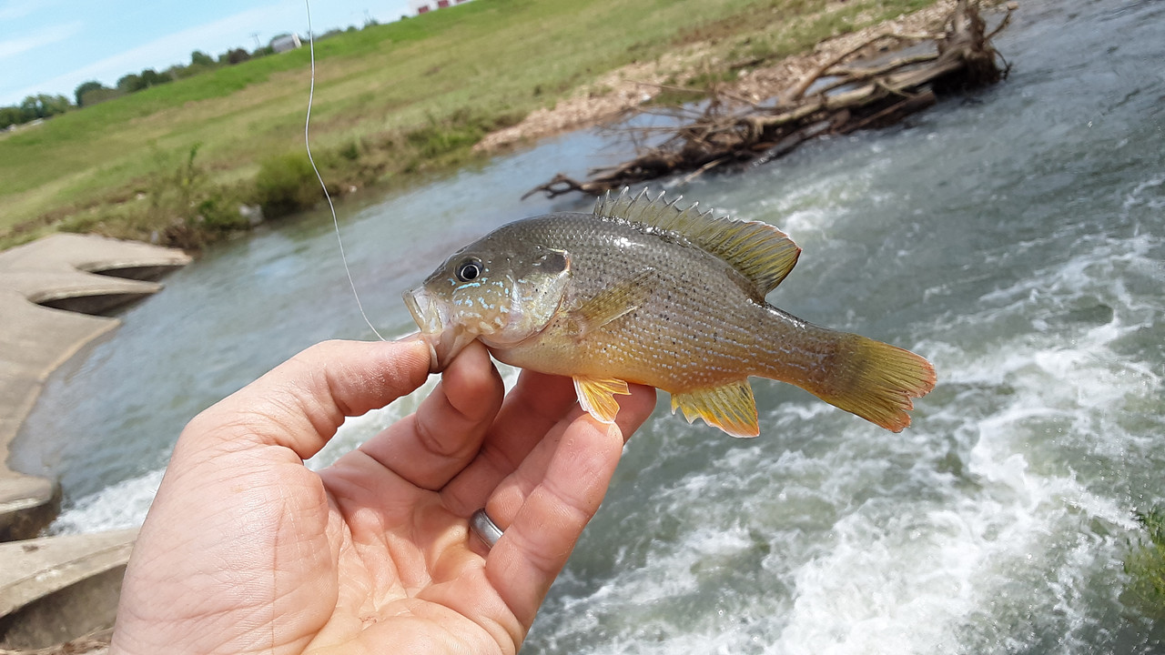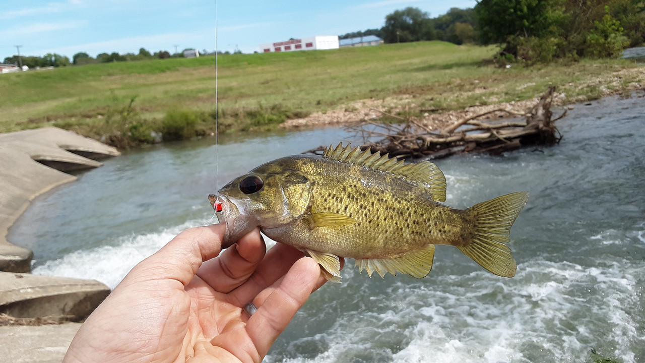 Ran to town today to take care of some errands, and then stopped by the overflow from the lake to see what was up below the surface. Got seven species, and a decent handful of fish. Nothing too impressive for size, but a couple of "keeper" sized panfish. The crawfish was a surprise though. All fish were caught on the same lure too! Each photo below is of a different fish, except the one of Sweet-Pepper holding some. She had a lot of fun releasing the ones we didn't keep. Check them out.