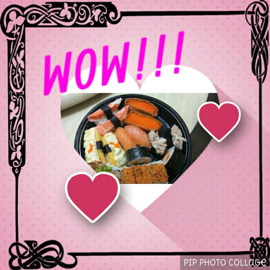 Today, I eat sushi at dinner. My sisters like to eat sushi. The photos are down there. 今天,我在晚餐吃寿司。我的妹妹很喜欢吃寿司。以下的照片是我今天吃的晚餐。