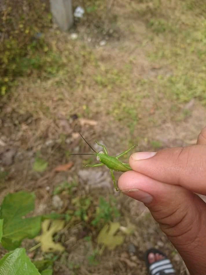 Hari ini aku berhasil menangkap belalang kecil dan mengambil gambarnya.