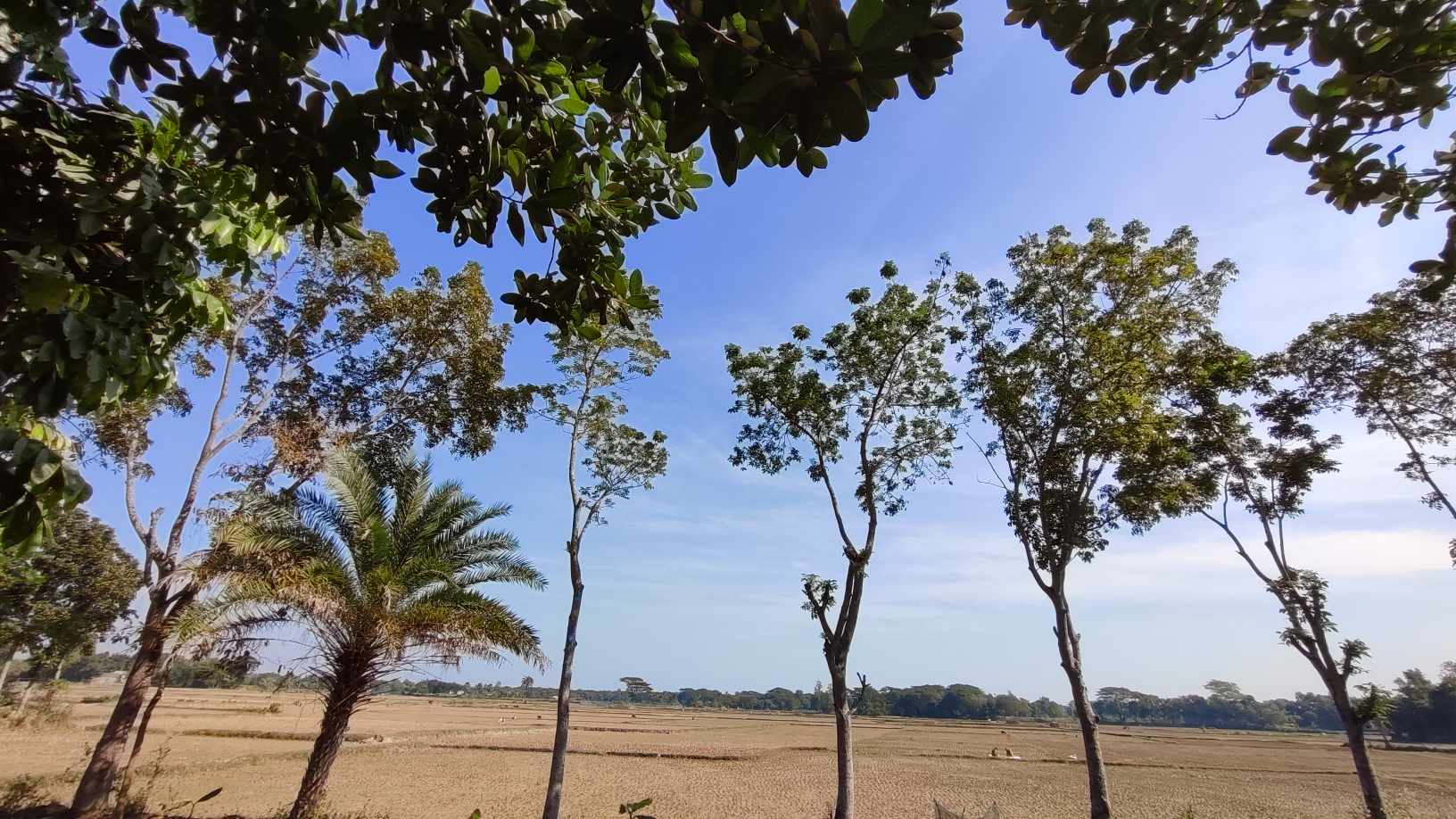 এই ছবিটি তুলেছিলাম শীতের শেষ দিকে। যখন মাঠের সব ধান কাটা শেষ। পরে রয়েছে শুধু ফাকা মাঠ। যত চচোখ যায় শুধু ফাকা মাঠ। এই ফাকা মাঠেরও এক আলাদা সুন্দর রূপ আছে।