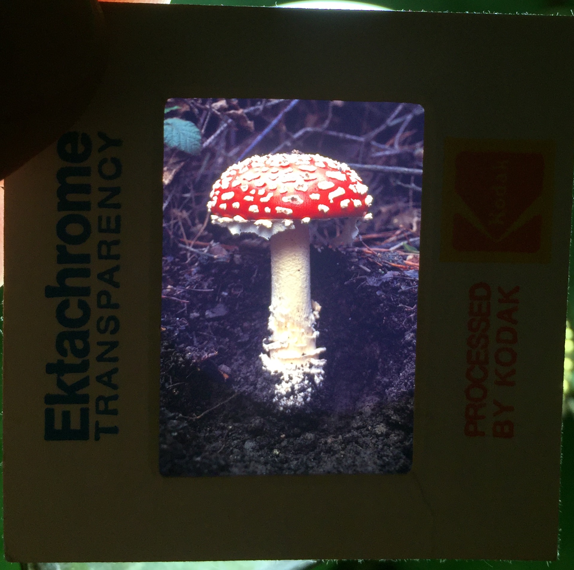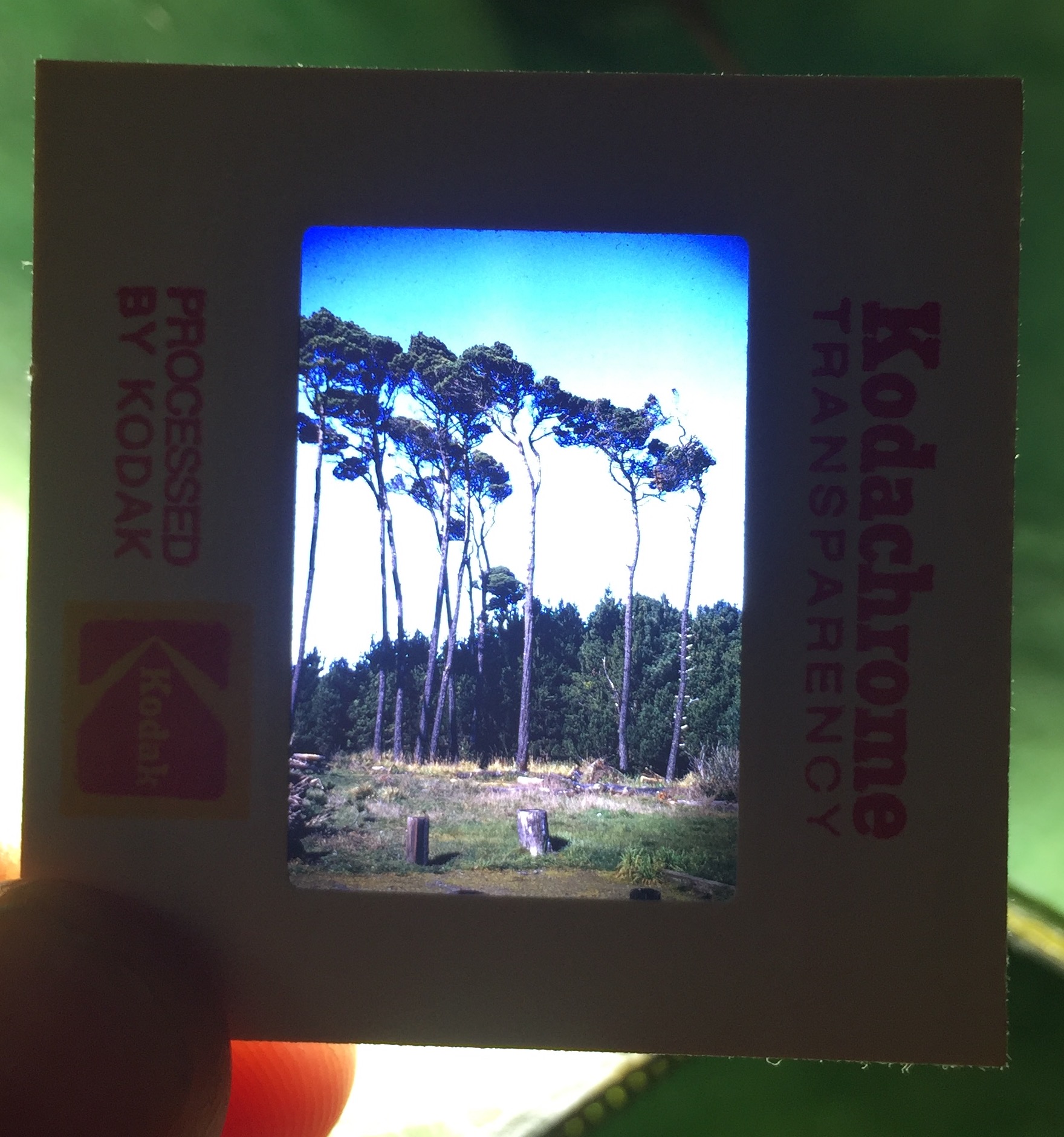 Next photo taken from 2 kodachrome slides. One of a tree lanscape and the other of a close up flower. The result looks a bit like a nuclear doomsday scene.