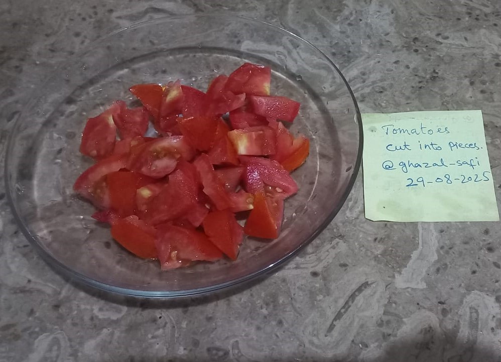 - Chop tomatoes into small cubes.