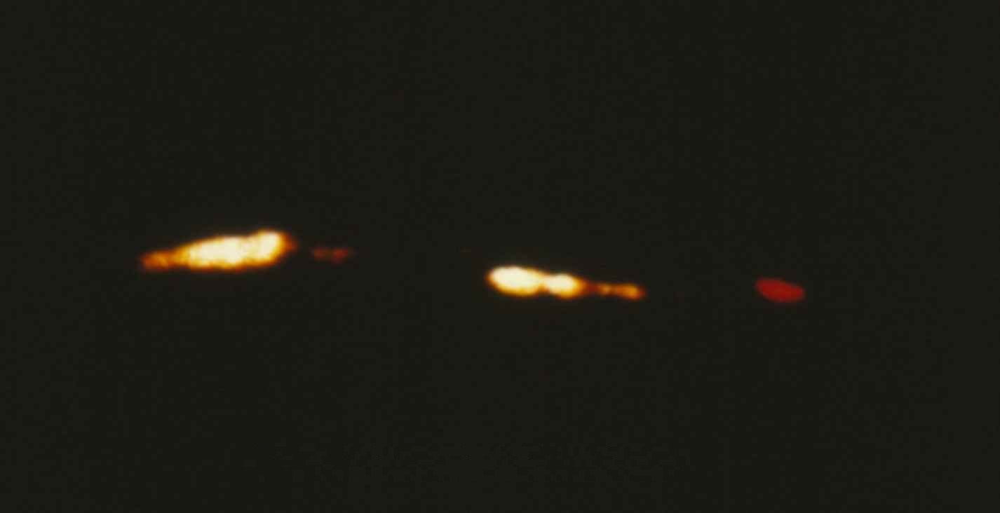This picture was taken by Leif Havik in 1982. There are three visible lights on the black “object.” Image Credit