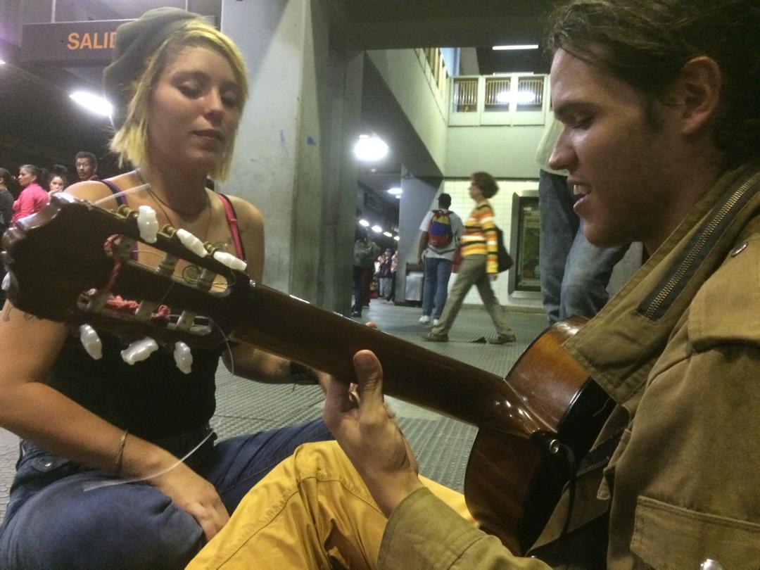 Ya al irnos del metro una chica con un guayabo (un despecho muy grande) me enseño Una canción para que Ella pudiera cantarla y así su llanto fuera Arte y pudiera desahogarse.