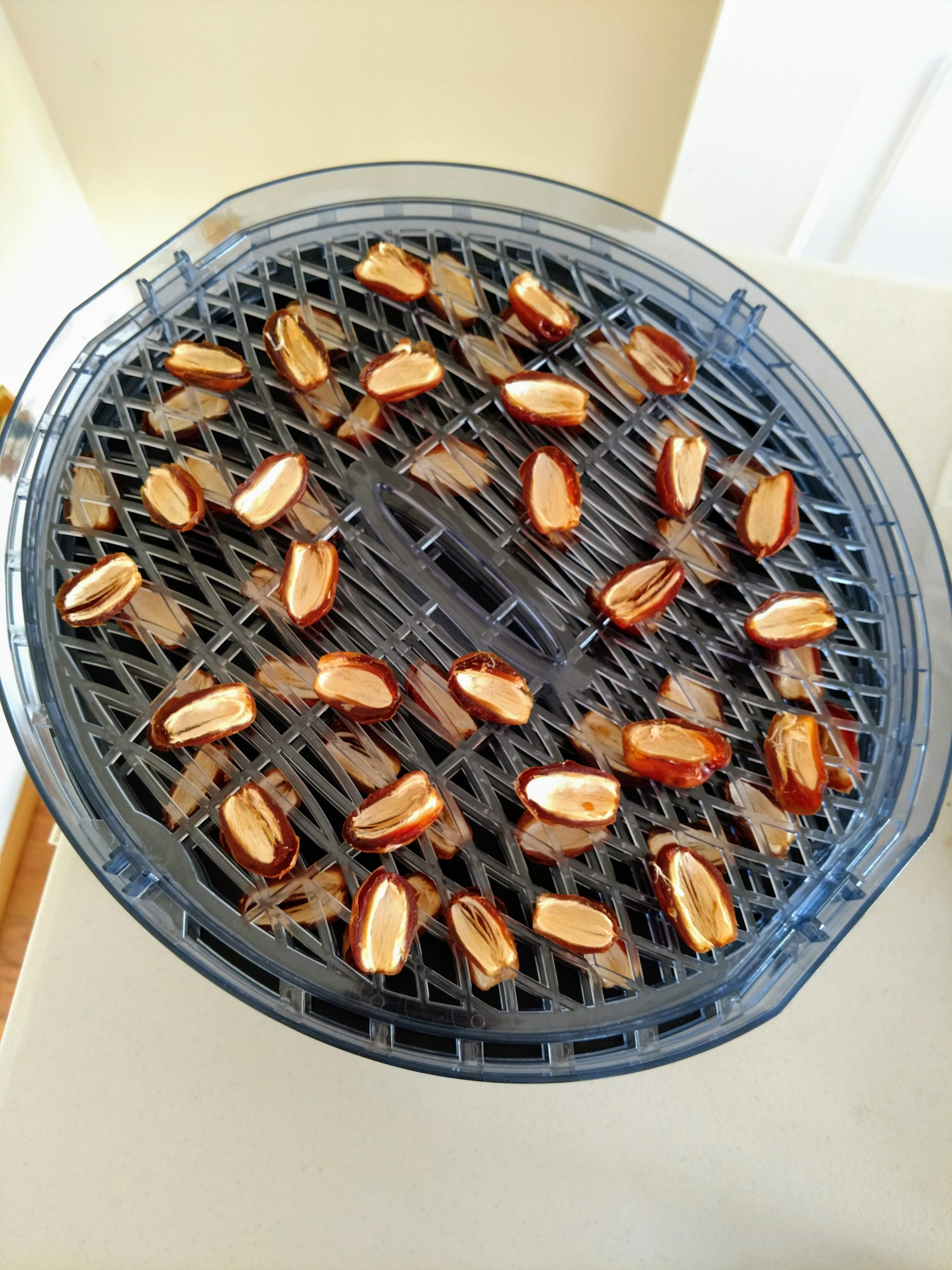 After running the dehydrator for a few days, I thought my dates were finally dry enough to grind up. I had read that it could take a while, but I didn't realize just how hard it is to extract all the moisture from them. Well, spoiler alert--I failed to do that.