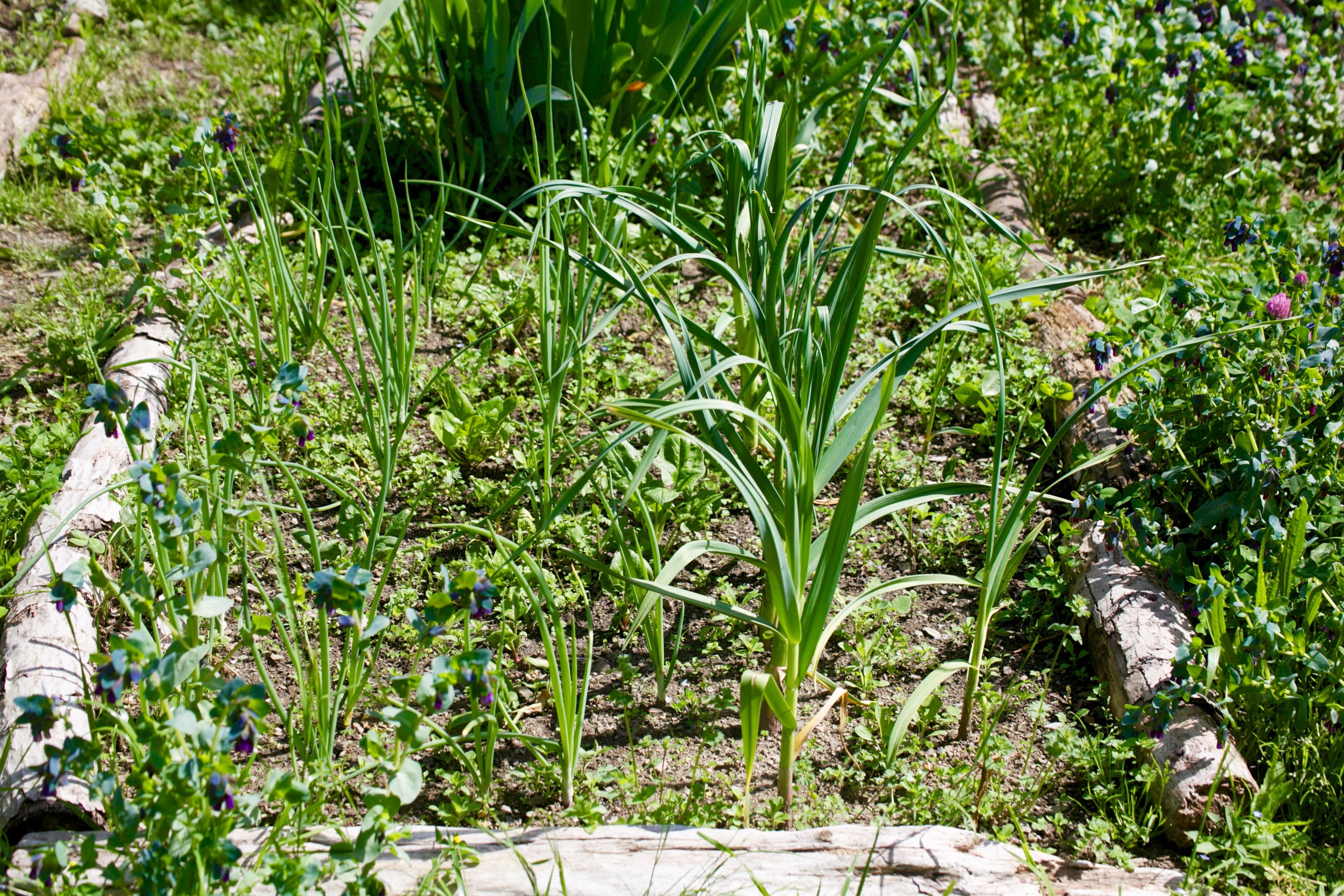 Some of the garlic & onions did not enjoy the recent torrential rain and one or two even died. But generally speaking they are looking great now that the temperature has risen and the days are sunny.