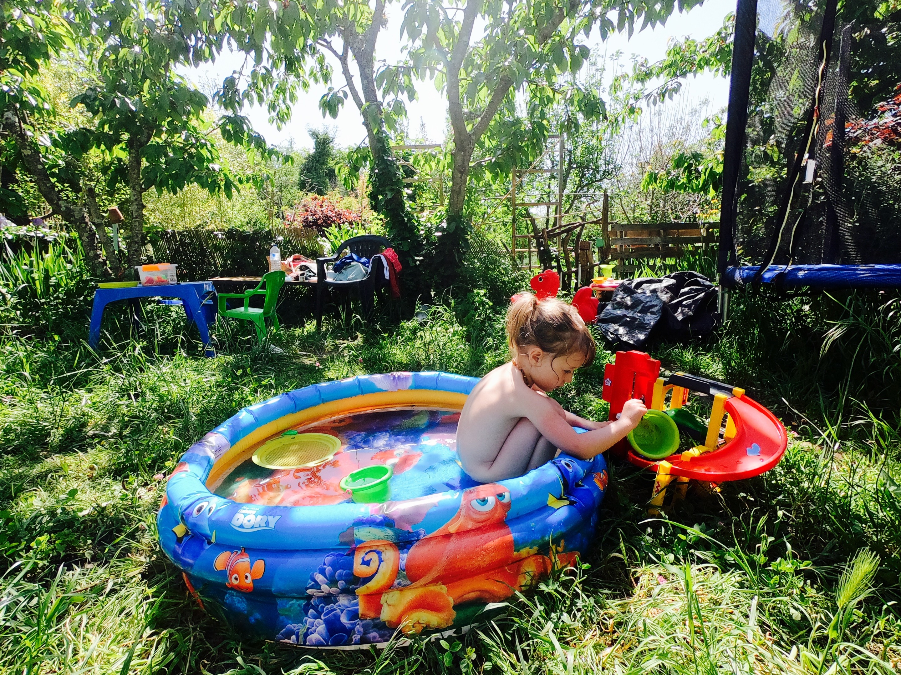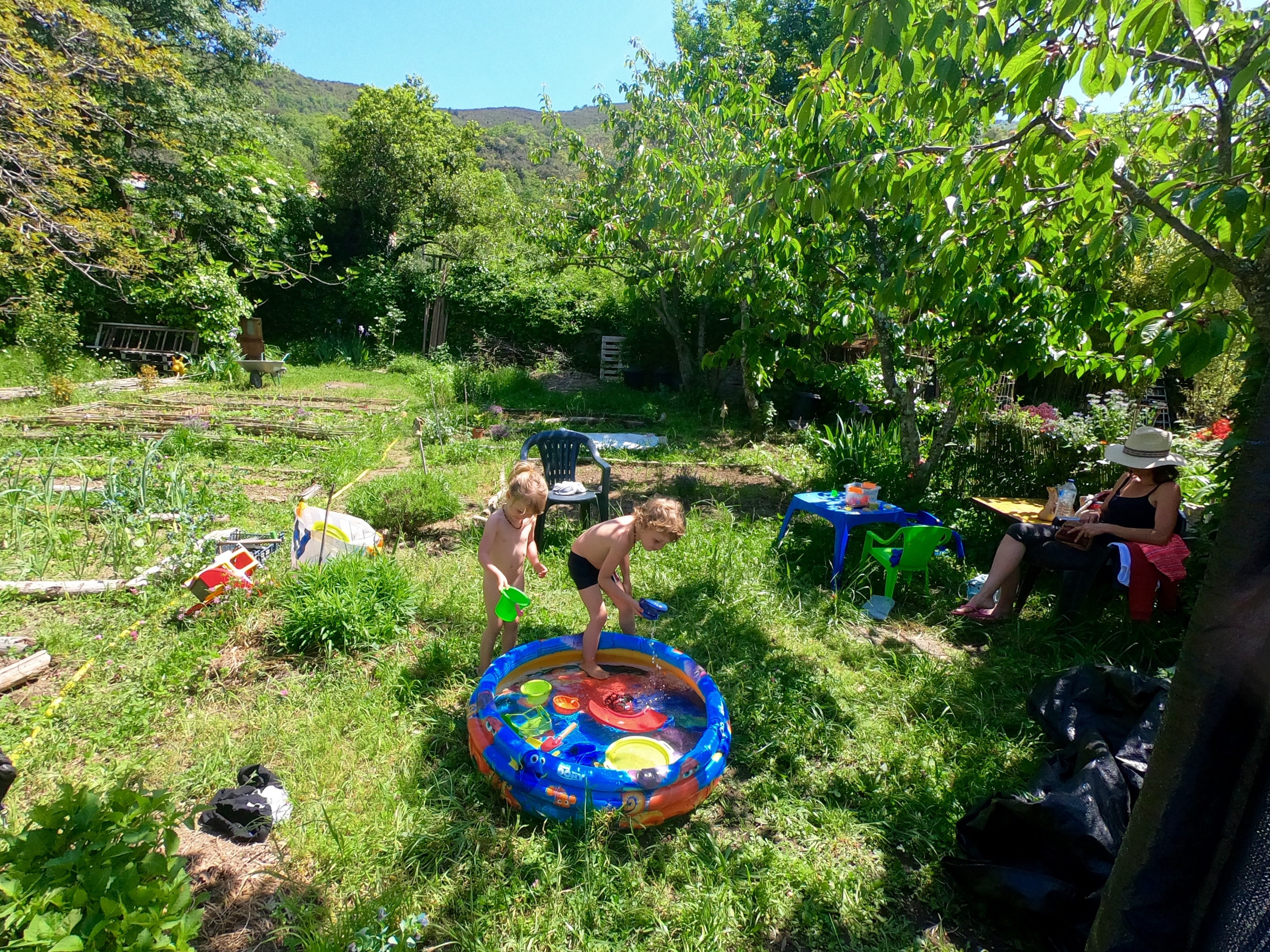 Happy we also have a pool for the kids to cool off in. I fill it up with very cold water from the mountain in the morning so that it is a more enjoyable temperature by the afternoon. At the end of the day the dirty water is used on the garden.