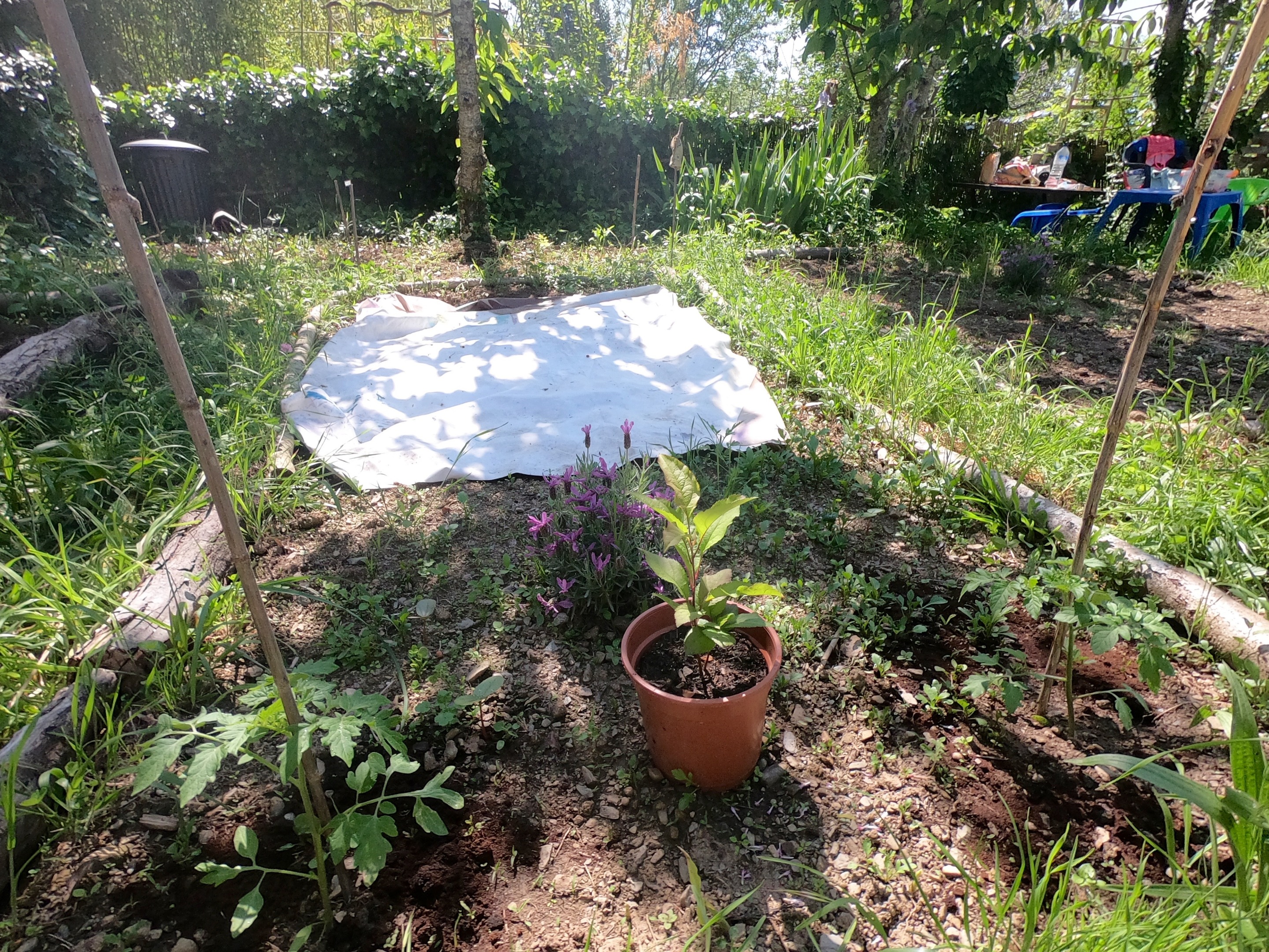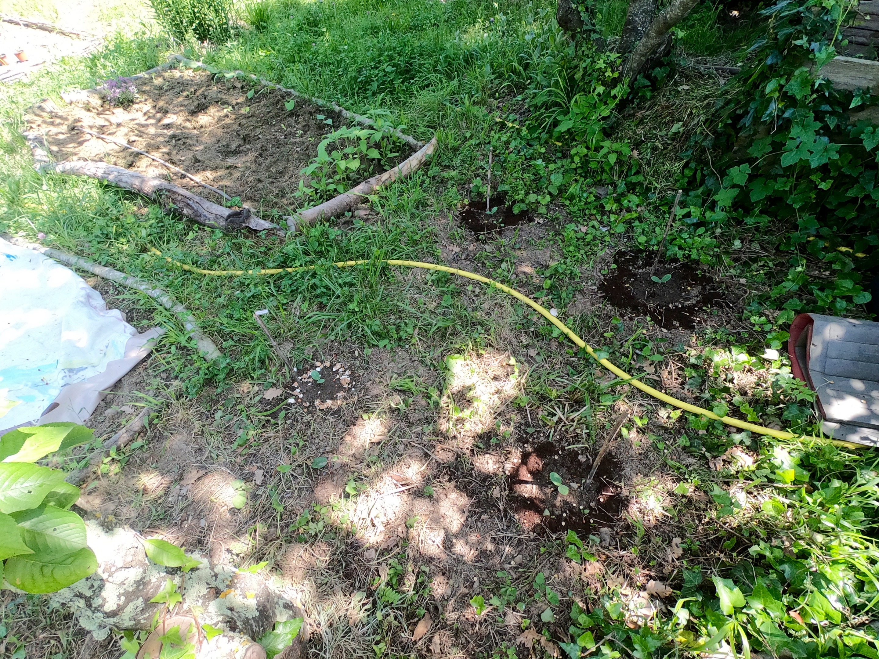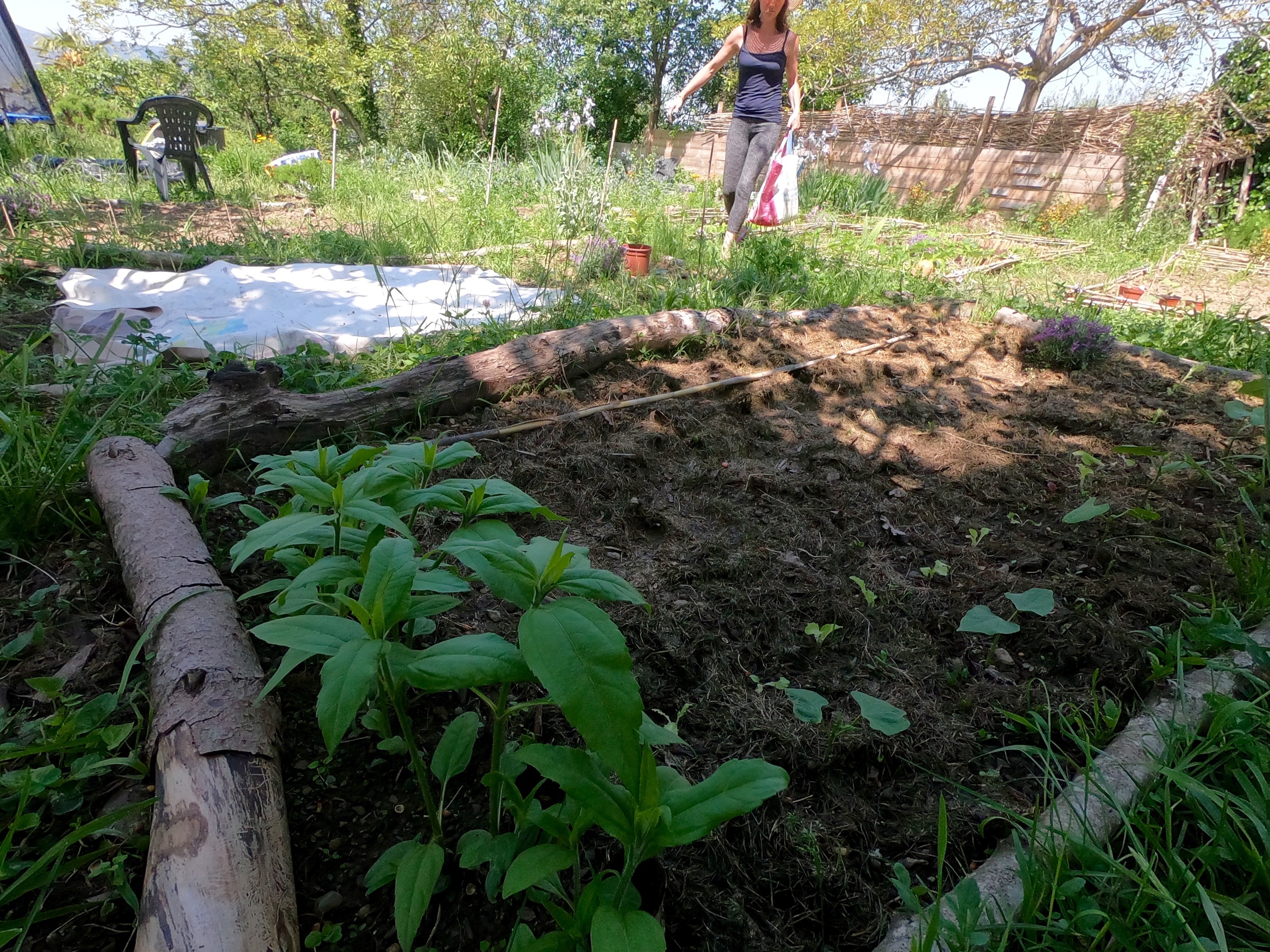 We have cleared a new area behind the trampoline for cucumbers, courgettes & eggplant.