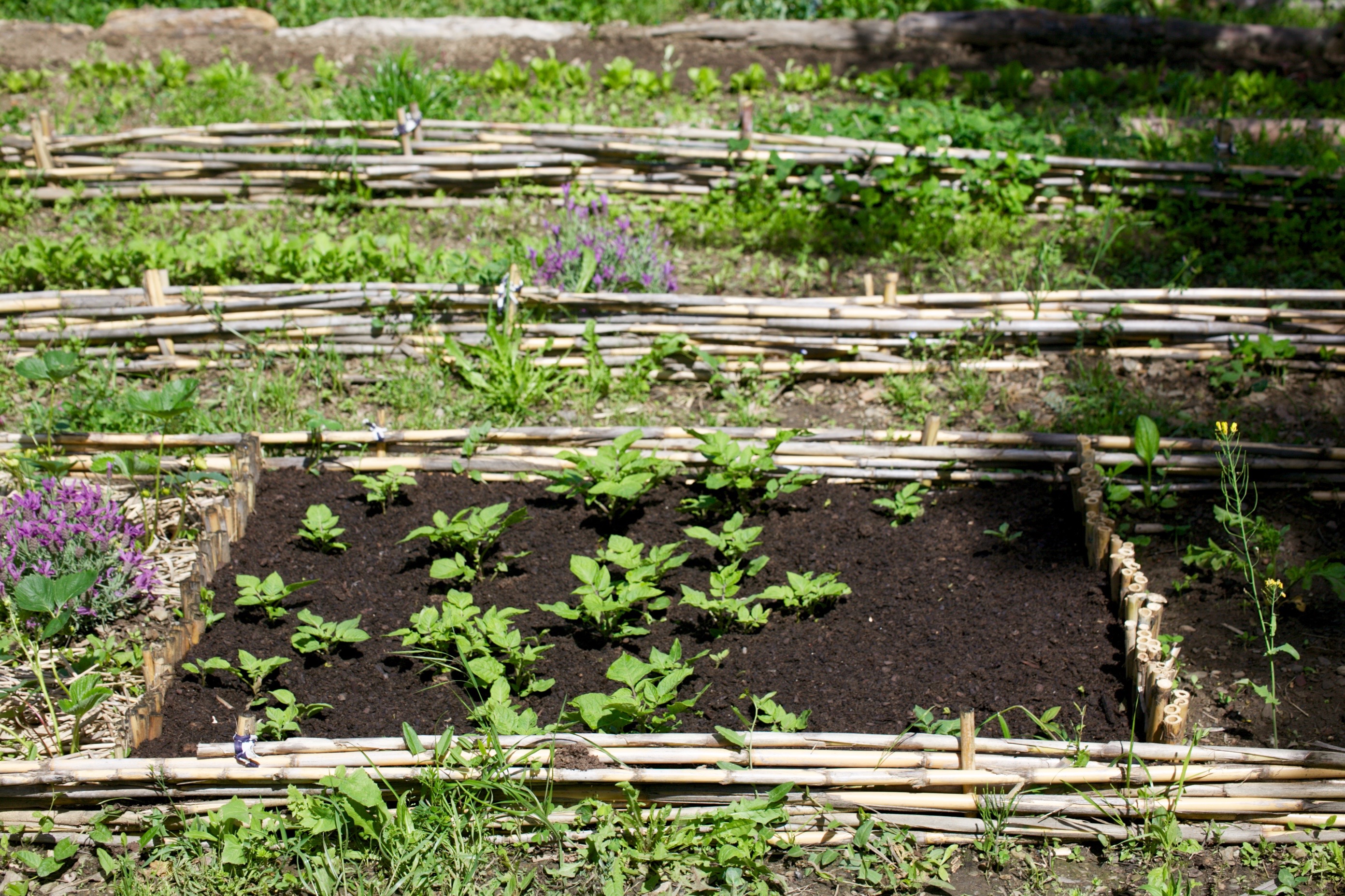 The randomly placed lavender plants help detract certain insects apparently.