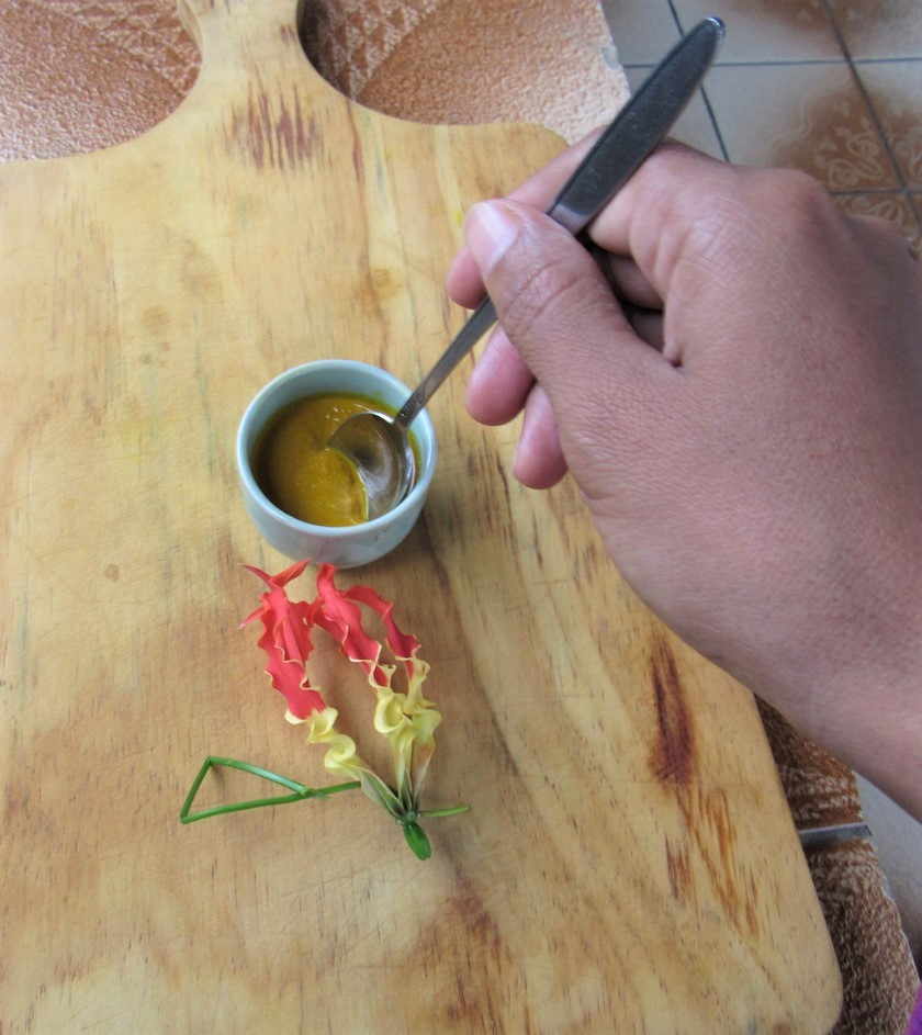 This post fits into both challenges: turmeric as one of the TWELVE seasonal plants, and also a DIY project that Sreypov has never done, although not extremely challenging. Keep in mind Sreypov's English and computer skills are limited, so I transcribe/translate and help her upload her posts.