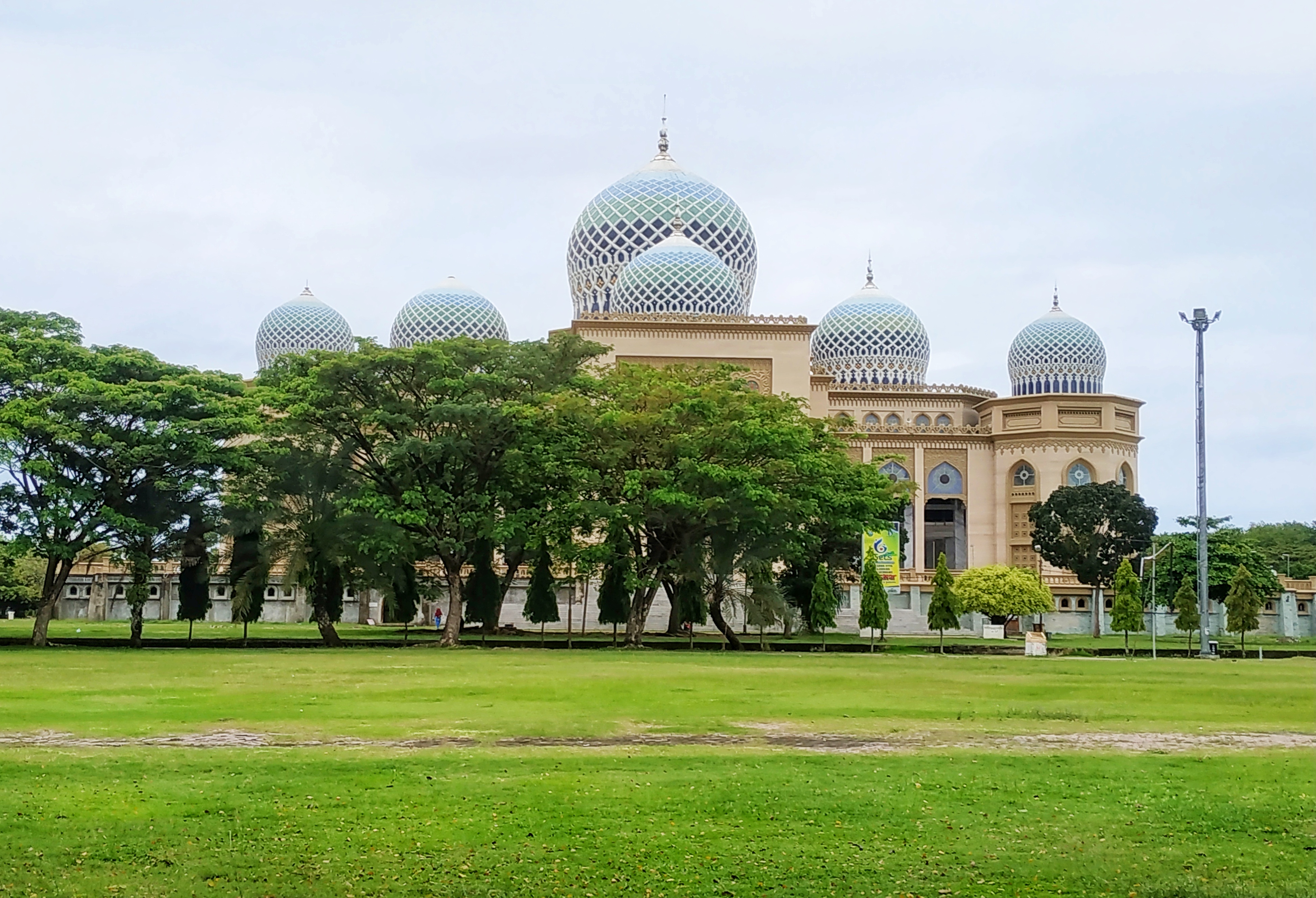 The natural beauty of the outskirts of the Lhokseumawe City Islamic Center Mosque with green grass, this Islamic center is not only the Great Mosque in the heart of Lhokseumawe City. This building also has various functions that can be used for other purposes, to develop and study the Islamic historical heritage of Samudera Pasai country.