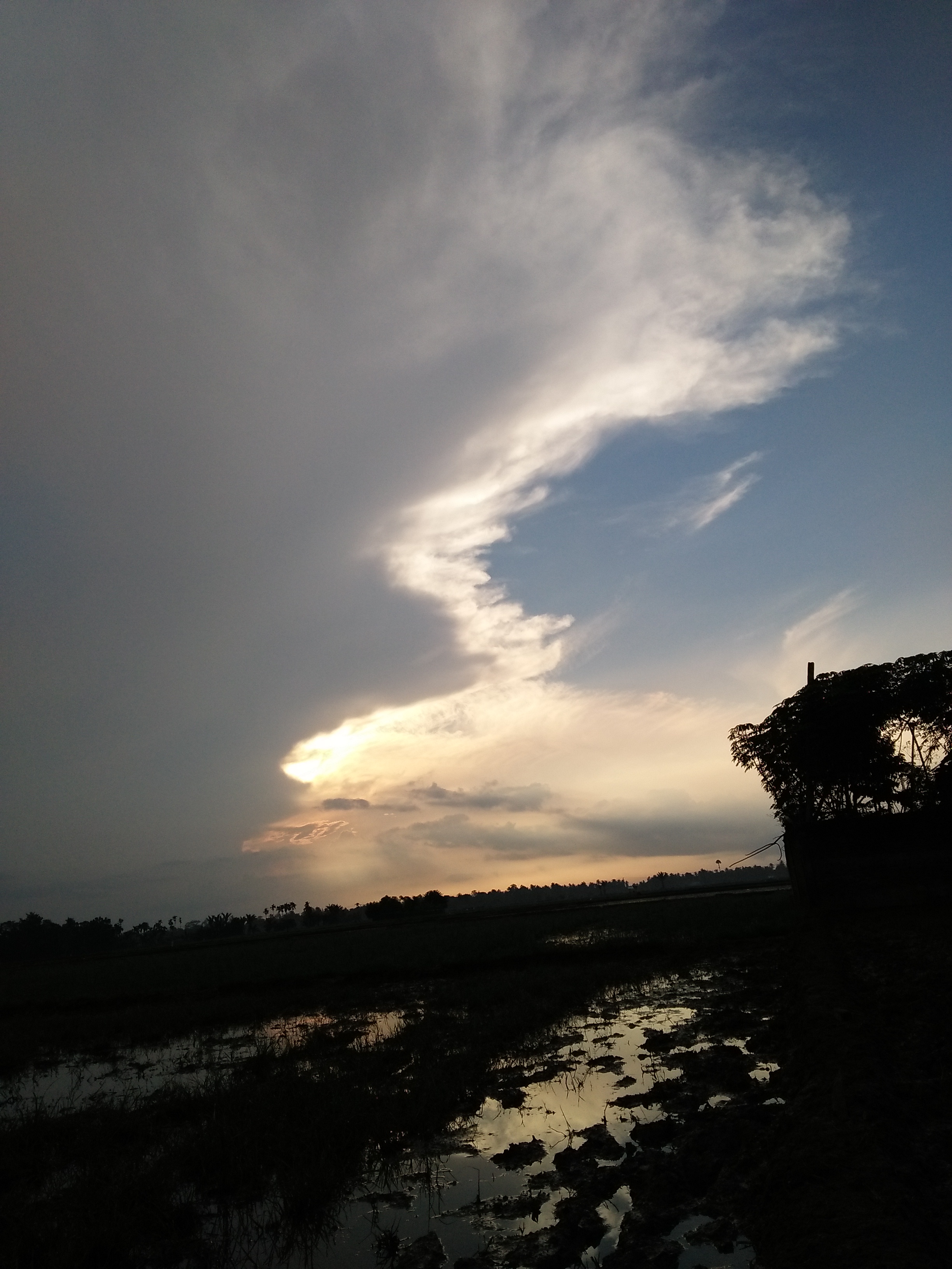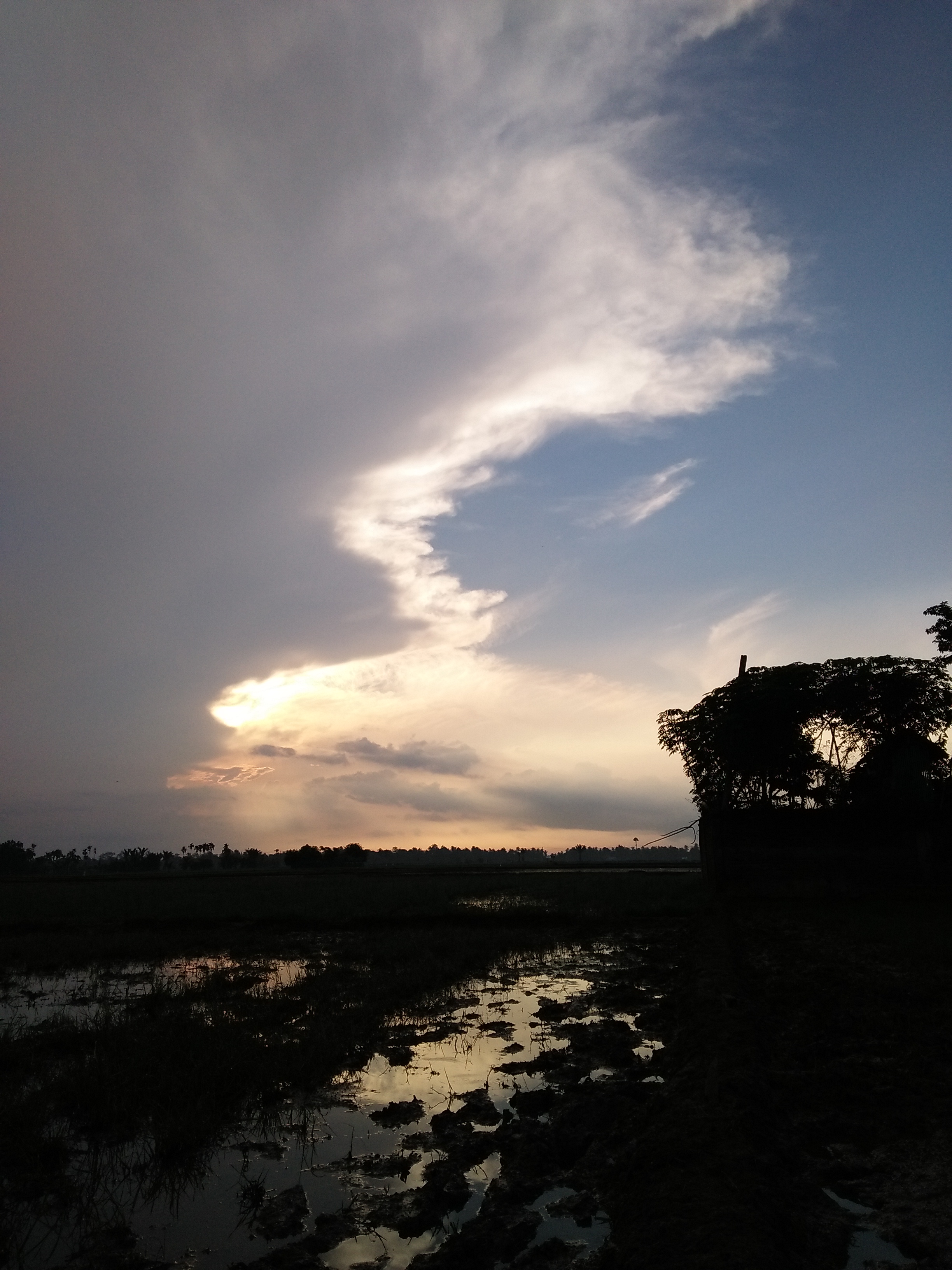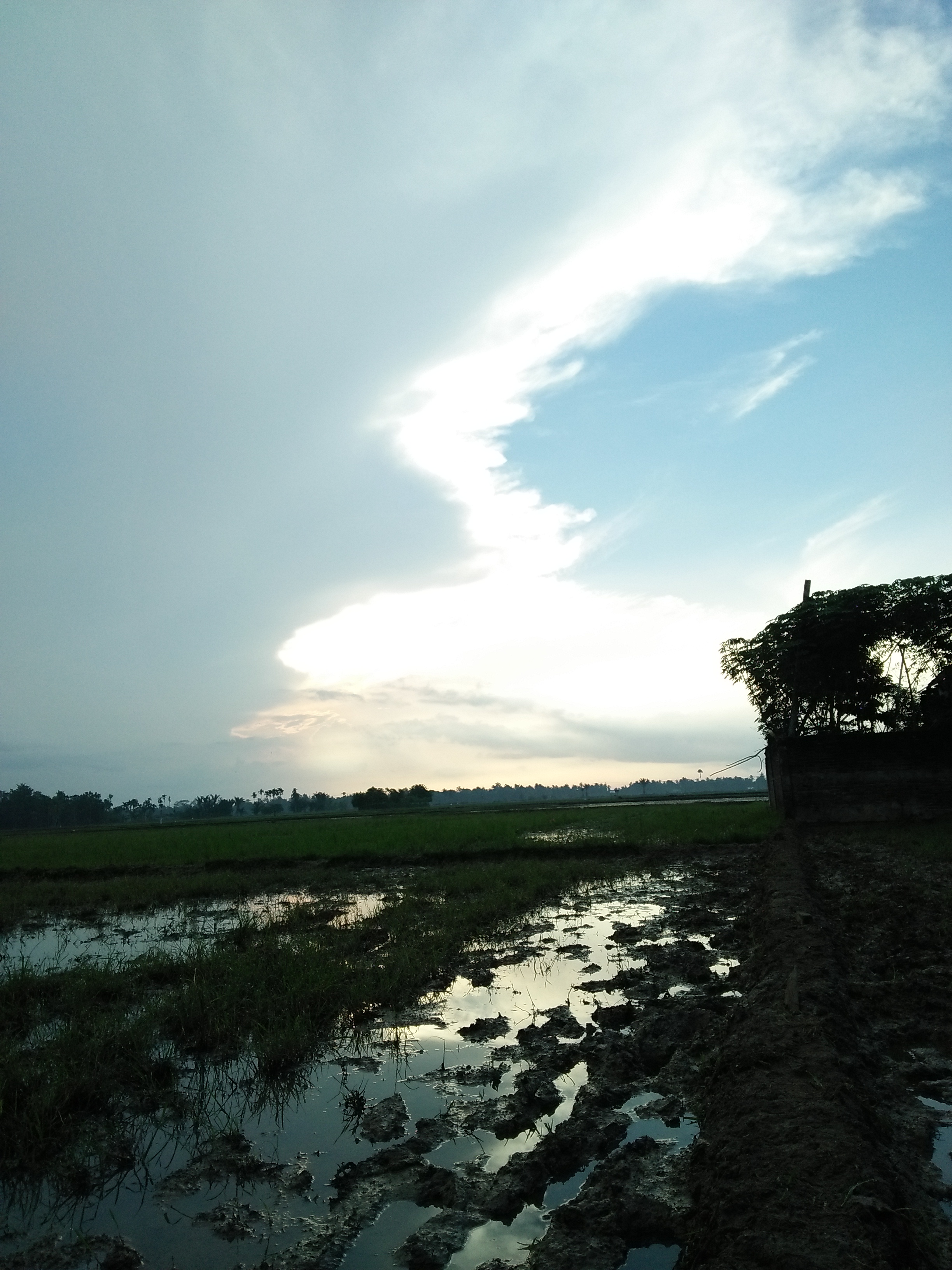 Usually people take pictures of the mountain slopes, sea ridges and from the corner of the shop, but today I take pictures of rice fields. Seeing the beautiful atmosphere of the morning, the sun is reluctant to show its light hiding behind the awans so that it adds beautiful atmosphere and panoramic views of nature.