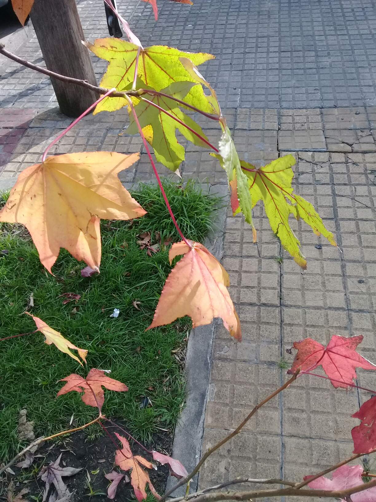 Ya se asoma el invierno, veredas con hojas y árboles vacíos.