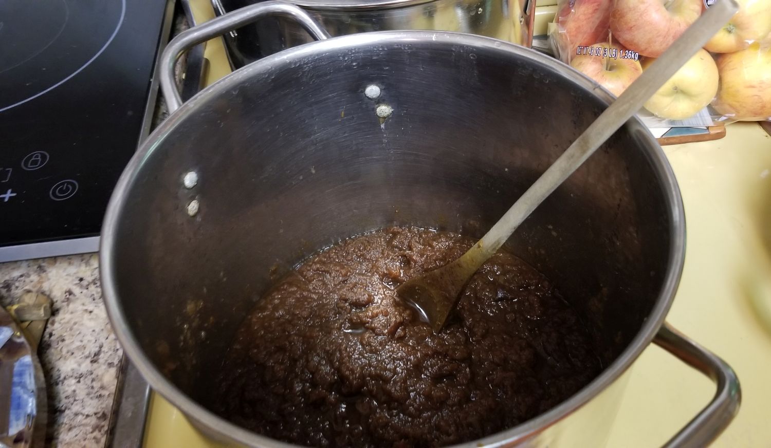 After a couple of days on the stove, it became clear that we needed more apples, and I had wanted to add some Granny Smiths, or another tart apple variety, in order to give more depth of flavor than the Galas by themselves would produce.