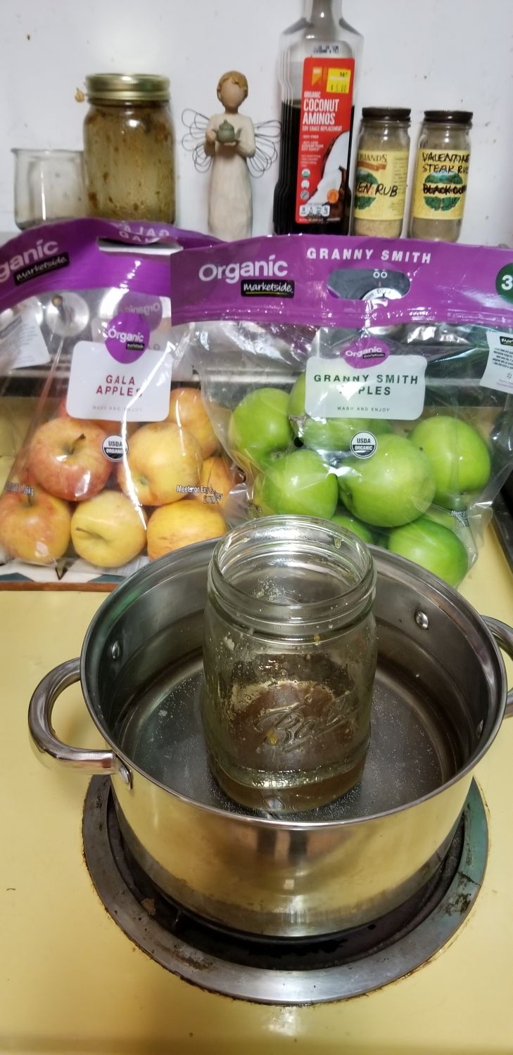 But one of my consolations was finding organic Gala apples on sale, so I bought two 3-pound bags, washed and cut them up, and set about making apple butter.