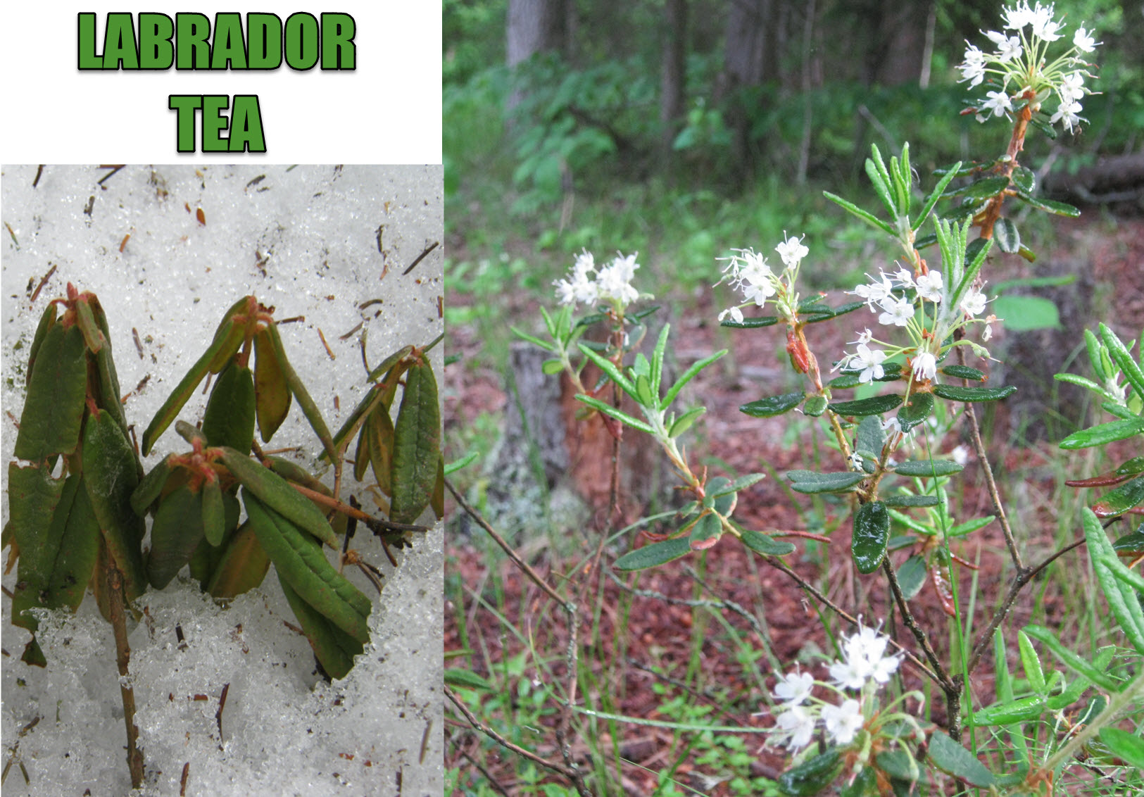 I love the Labrador or Muskeg Tea for it is one of the few plants you can harvest all through the winter, even gathering it from under the snow.