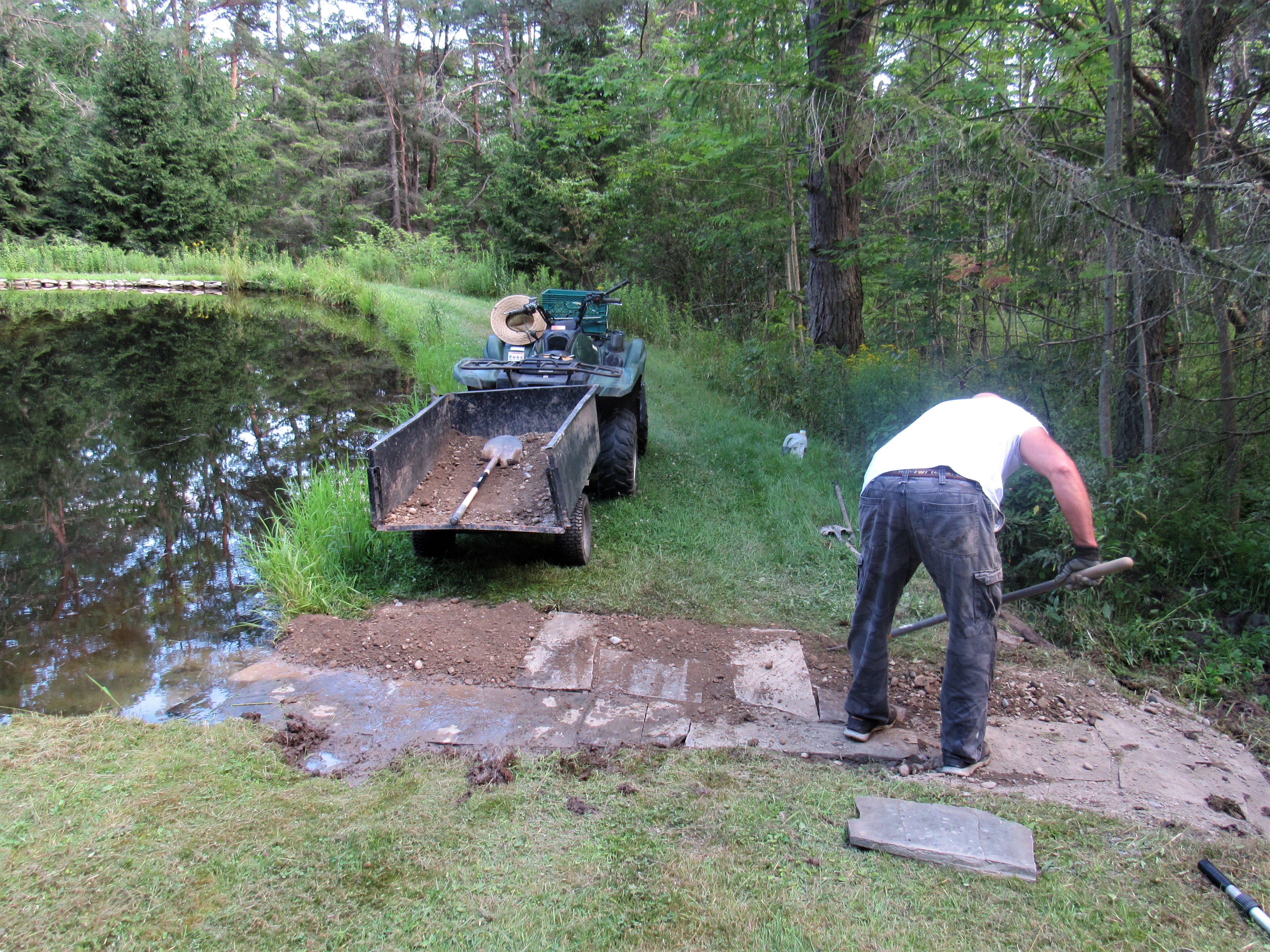 Just yesterday I grabbed my shovel and expanded my existing large pond a fair bit and built a new dam upstream of it. I still need to finish the dam (mulch on the dam, some wood to support the downstream side and some rocks for the spillway and the exposed end) and I need to build an island that it will one day connect to.