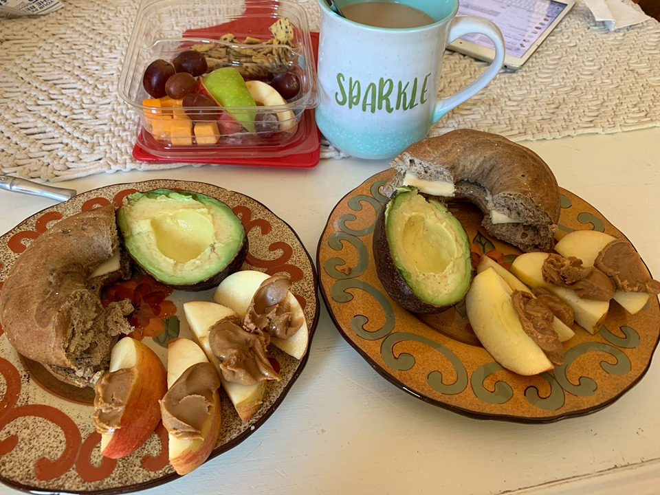 Okay so this next one wasn't such a pretty picture but it was a nice simple breakfast. Half of a Dave's Killer Bread pumpkin spice bagel with butter, some sliced apples with nut butter, and half an avocado with salt. Quite the mix there. lol. It was perfectly delicious.