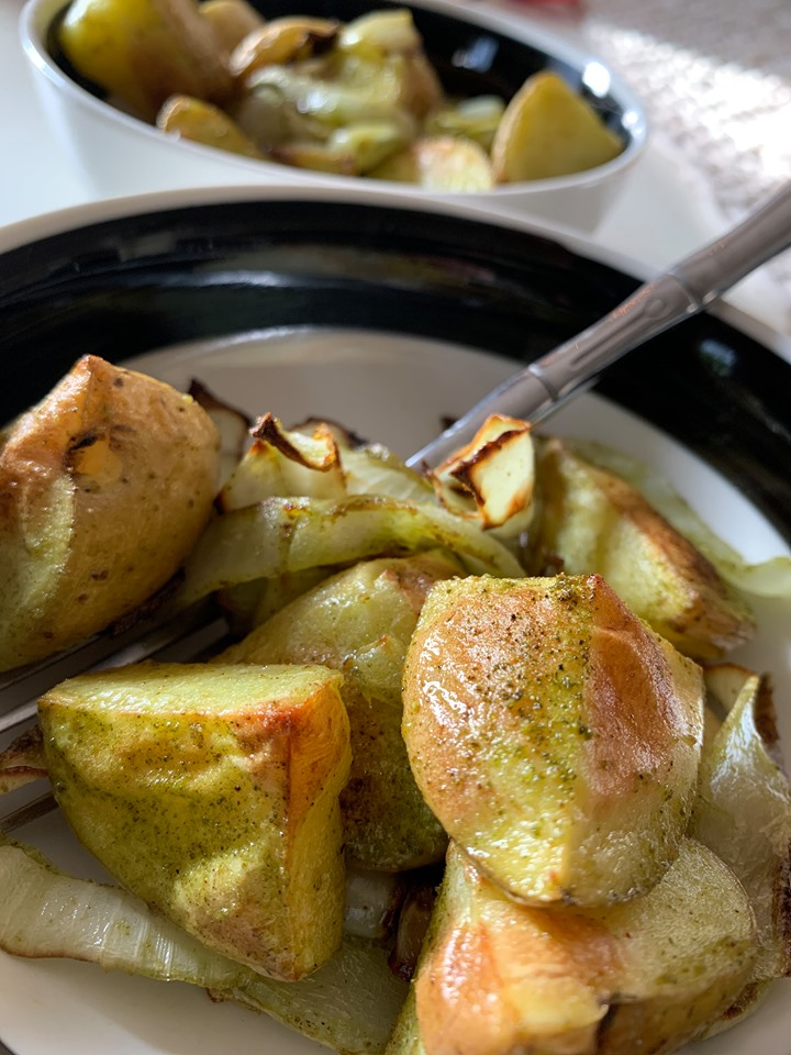 We also got a new Ninja Foodie for Christmas (Thanks MOM!! lol) and so we had to try it out with the air fried option! We whipped up some of our homegrown potatoes and onion in the air fryer. They came out so delicious. Seasoned just right and boy do they look so pretty.