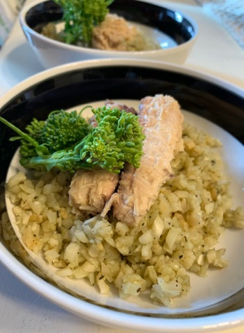We followed this with a plate of Seasoned Veggy Rice (broccoli and cauliflower rice) topped with Grilled Mackeral and a side of homegrown Broccoli Rabe flowerets.