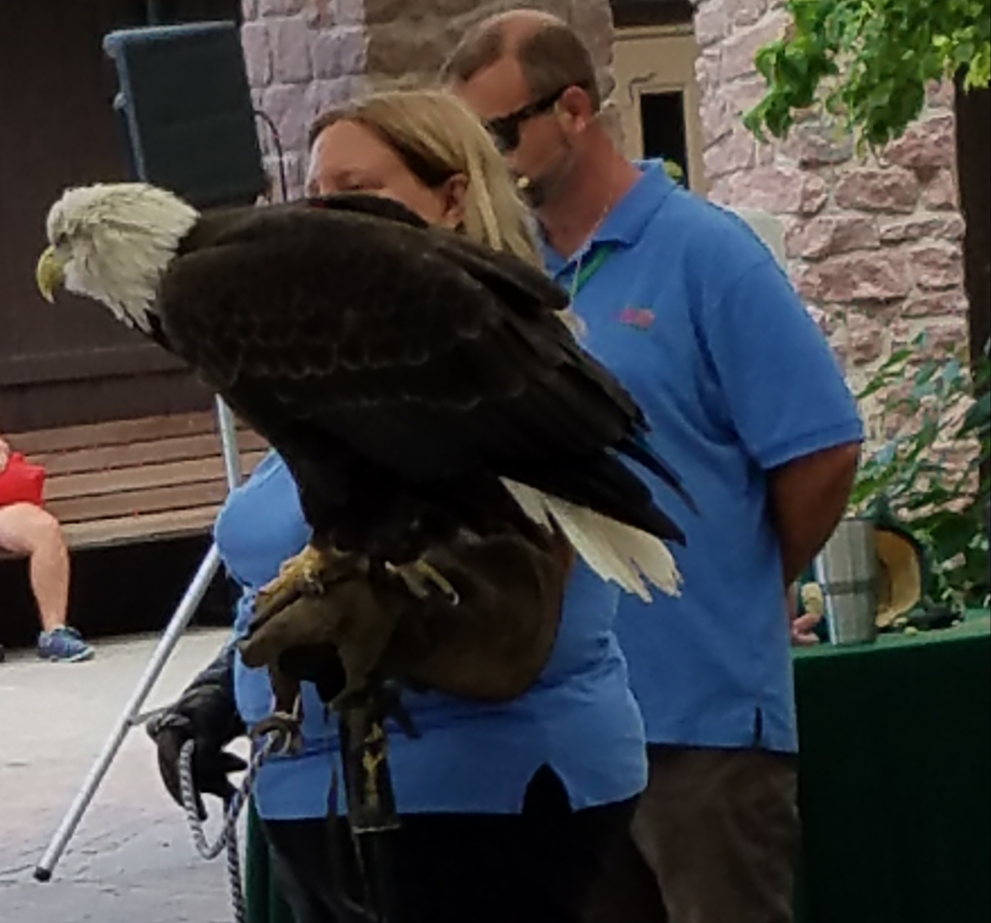 Eagle show at conservation building. She is 29 years old and has been in captivity since 3 months old a rescued bird.