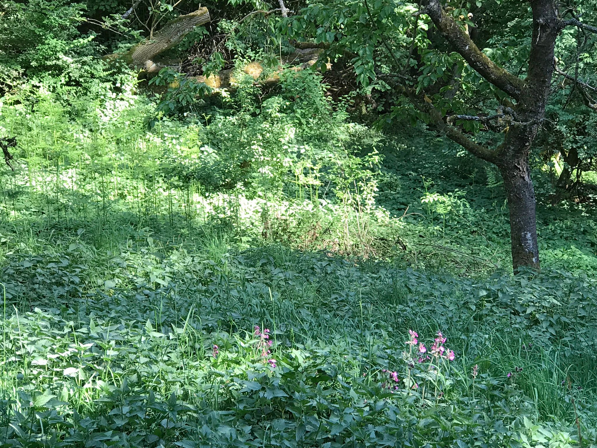 A lot of old sorts of cherry, apple and plum trees are growing. I added a lot of plants for bugs, butterflys, bees, blumble-bees, wasps and hornets.