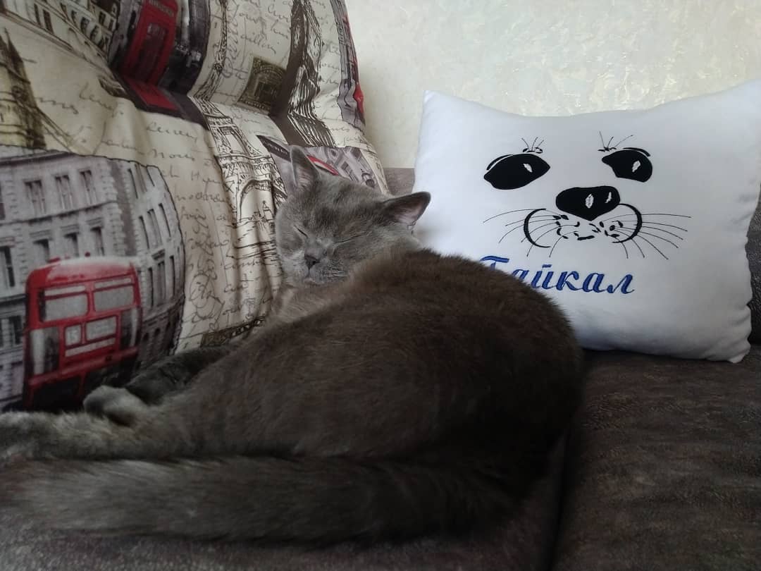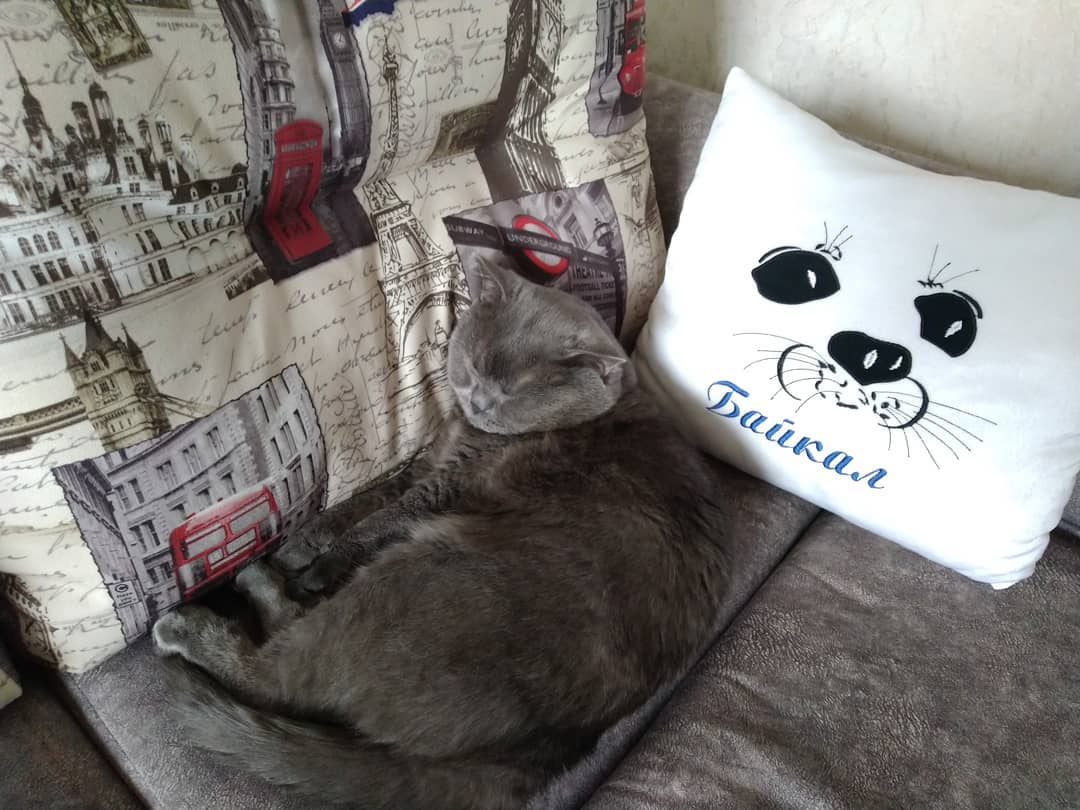 The writing on the pillow in the photo is a russian word Байкал that is the name of the lake Baikal.