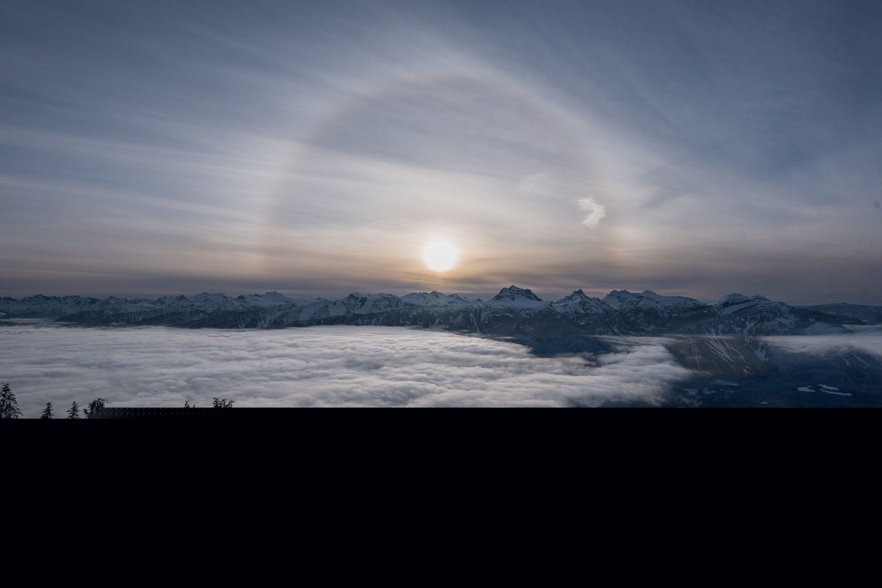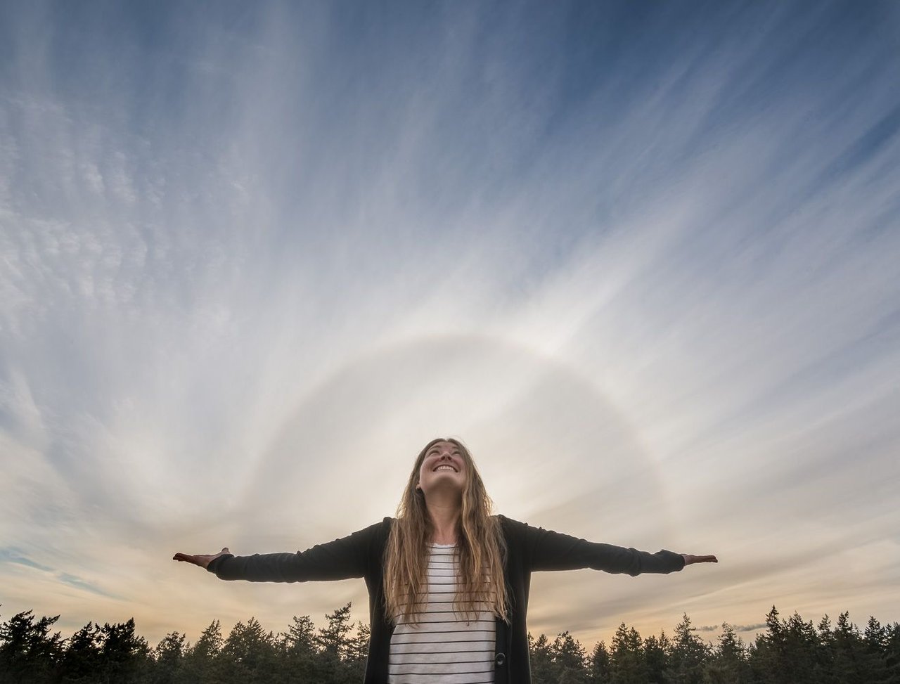 Sun halos, or sun circles, are caused by high, thin cirrus clouds drifting high above your head. Tiny ice crystals in Earth's atmosphere create the halos. They do it by refracting and reflecting the light at a 22degree angle. makes for some fun photography.