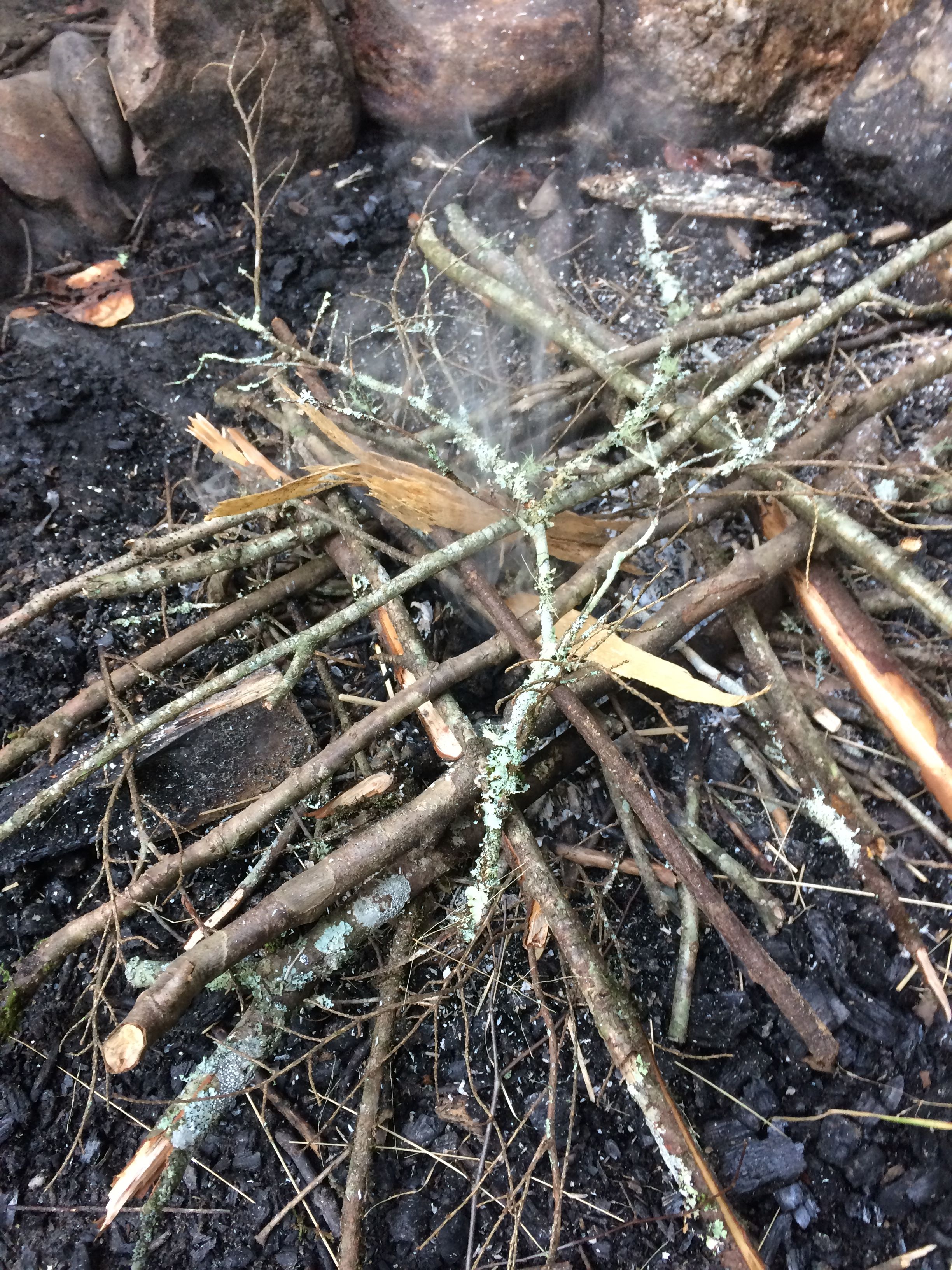 It had rained the day before, so all of the firewood was damp. Our fire gave up on us.