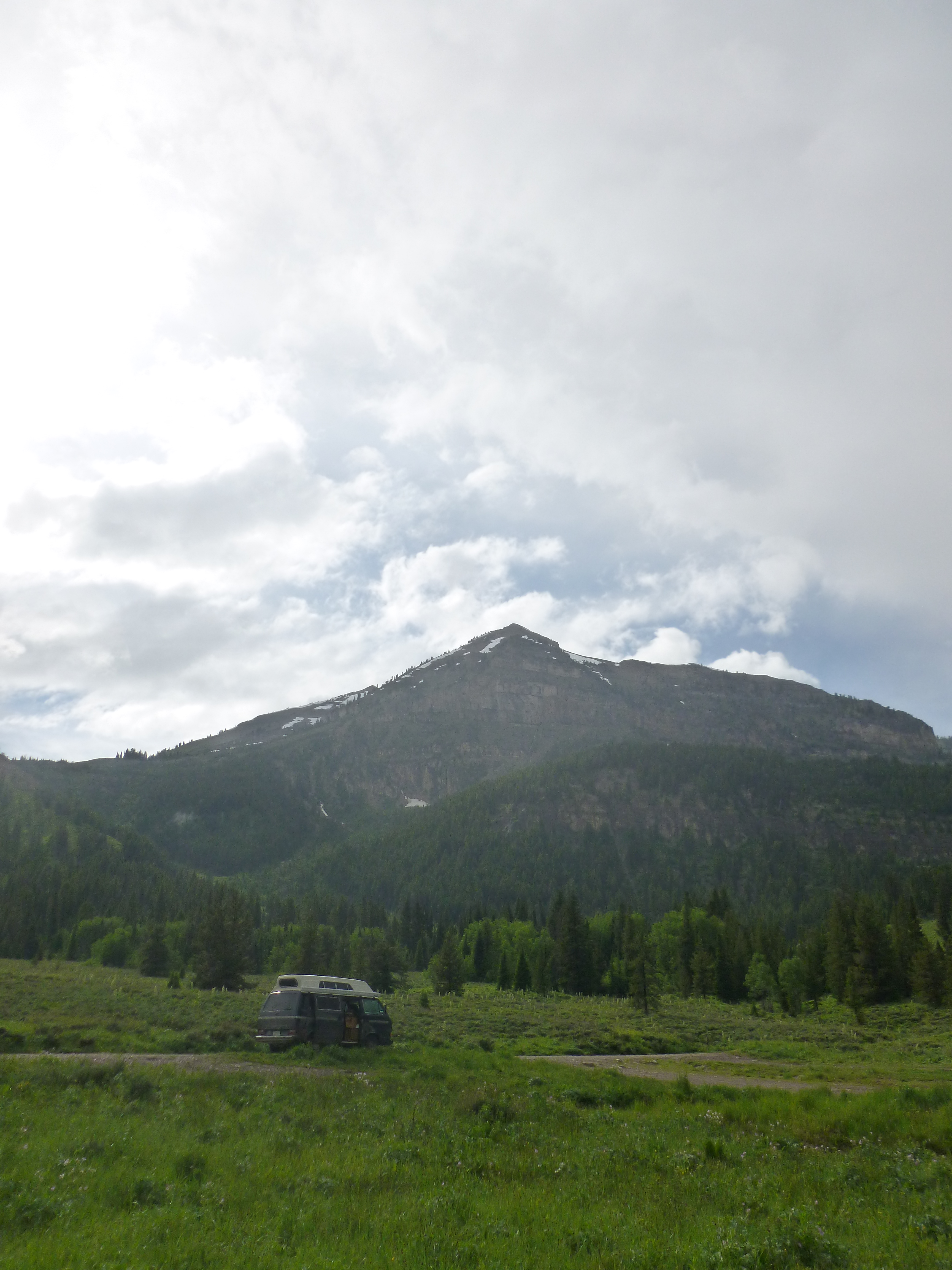 What's up Steem Team?! Things are pretty hot and dry here in norcal, got me thinking about the wet and cool weather while camping in Wyoming on the way home from our road trip. After a long day of driving through beautiful mountains and heavy downpours, @joleenwillis and I reached our destination for the night. The 10 mile dirt and gravel road up to the hot spring was a little sketchy in some spots because of the rain, but we made it!