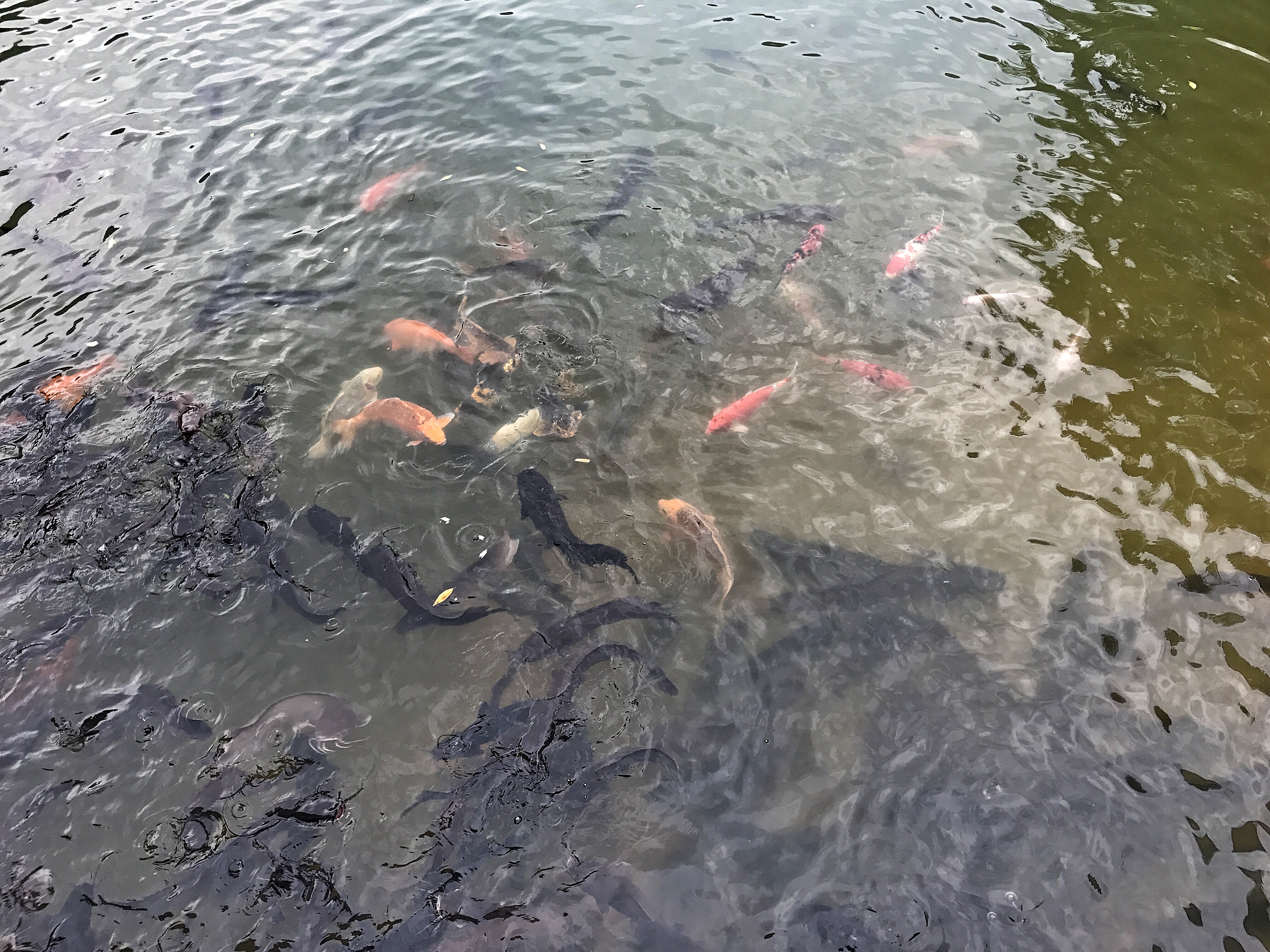 Fishy. These fishes are so big in size. They must have been giving proper food by the people. Too many, too colorful and too beautiful. You are living free in this big ponds. Swim freely dear fishes - coz even I am not as free as you.