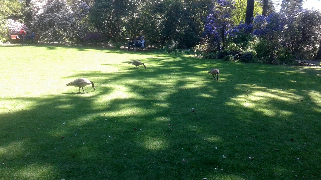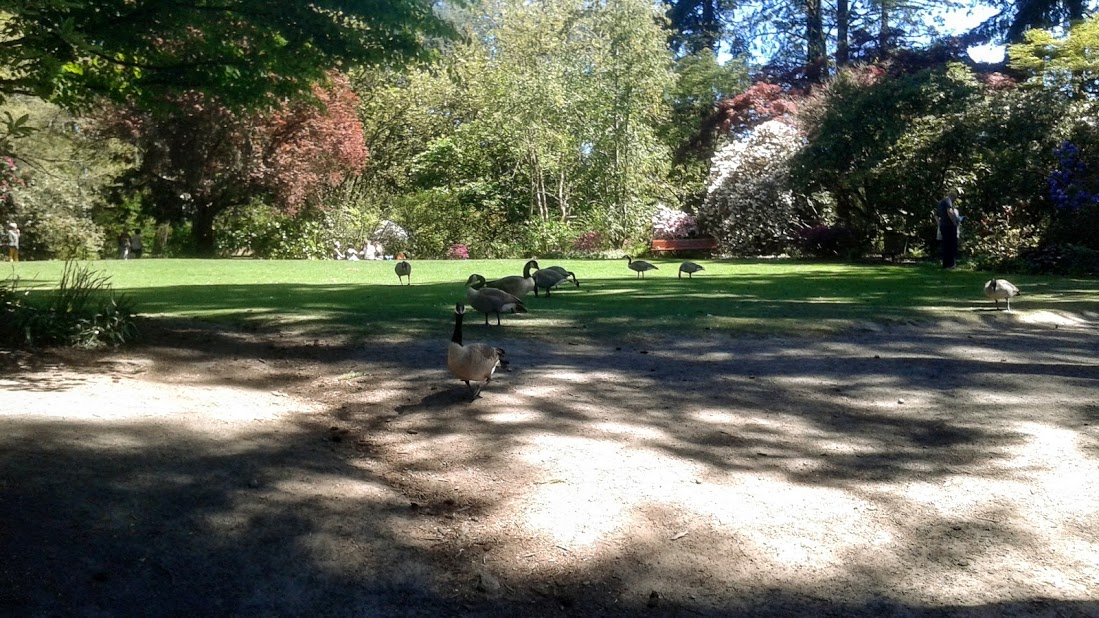 There are no buildings here apart from the small ticket entranceway. Utility sheds and storage buildings for hosting wedding event equipment is tucked away from sight, with attention drawn instead to the ponds and large plaza lawns where the geese leisurely stroll. Nearly every path includes small outdoor room enclosed by walls of plants that make me feel private and cozy.